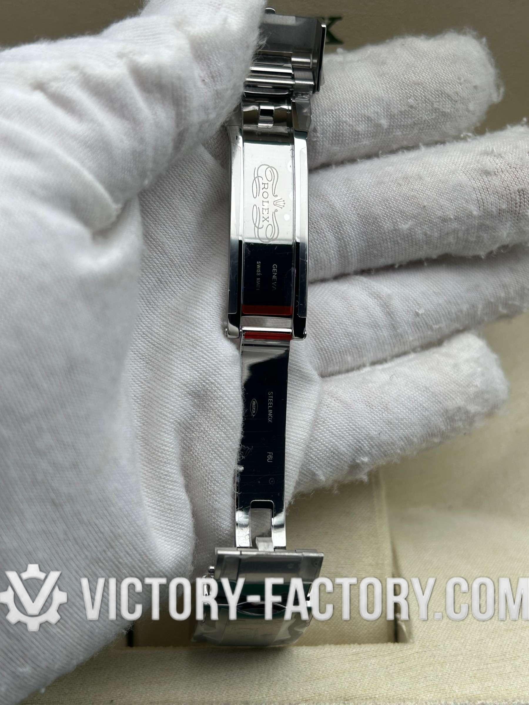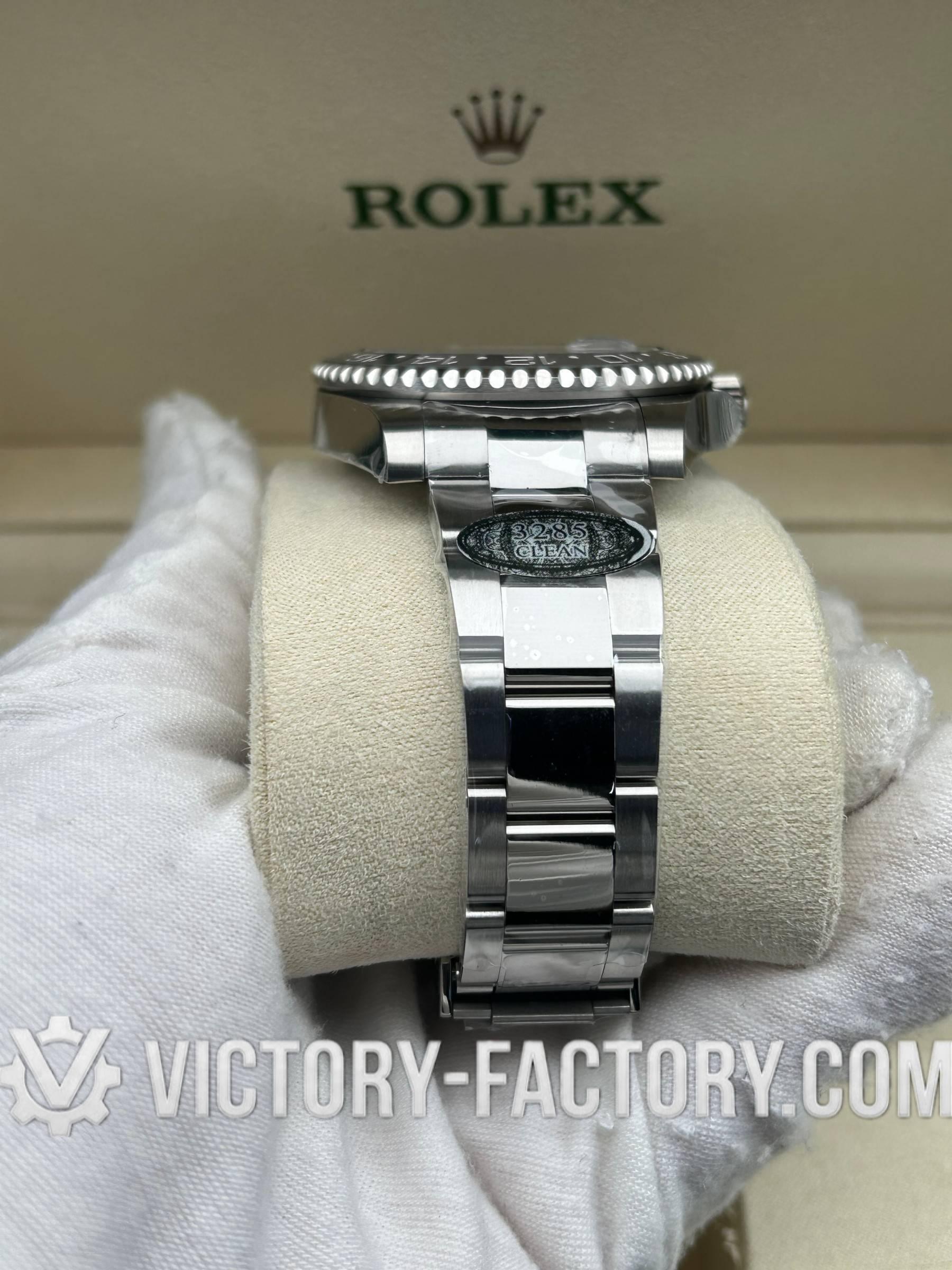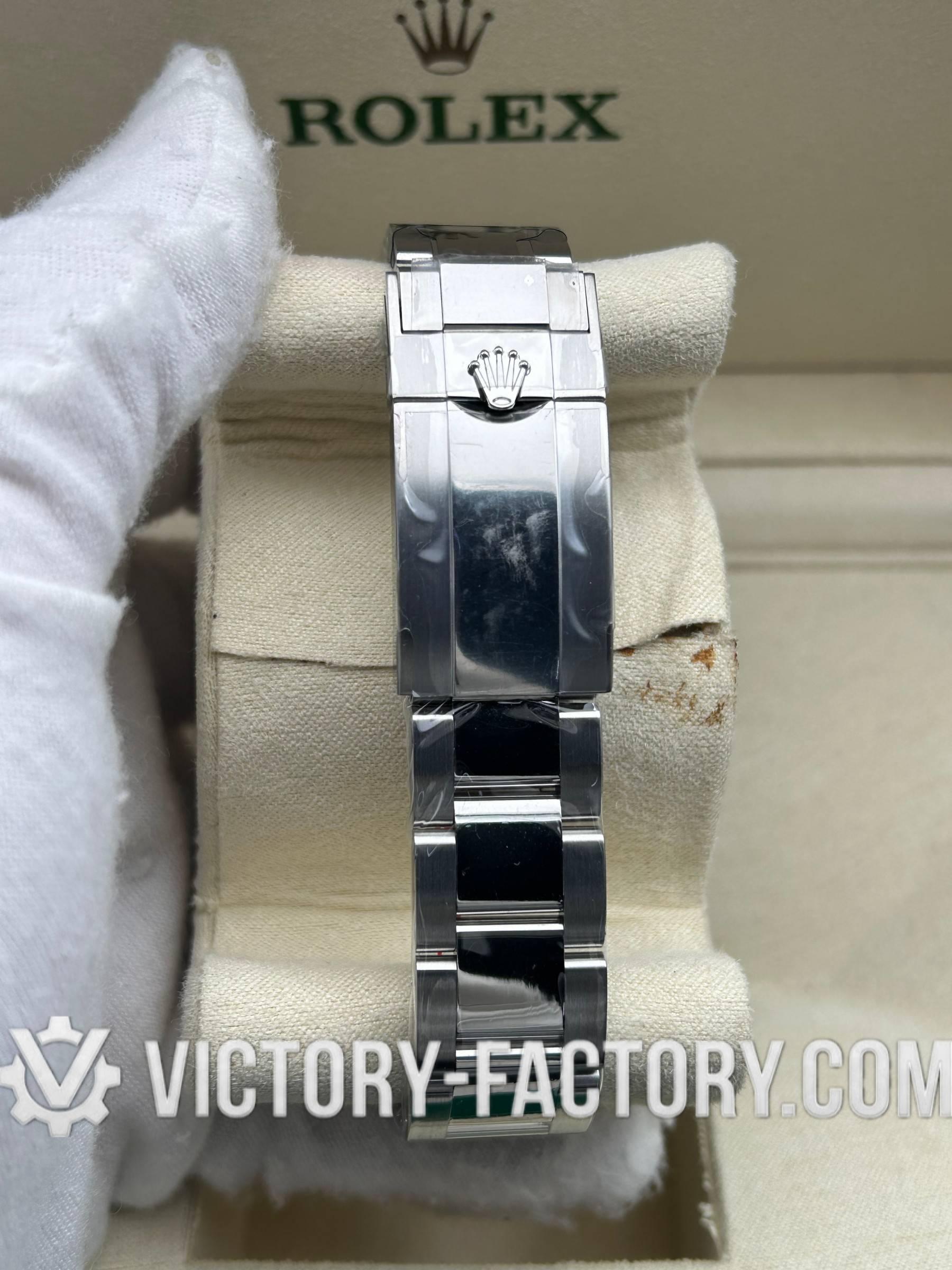 The 40mm case is crafted from solid 904L stainless steel monobloc, providing a faithful recreation of genuine Rolex steel.