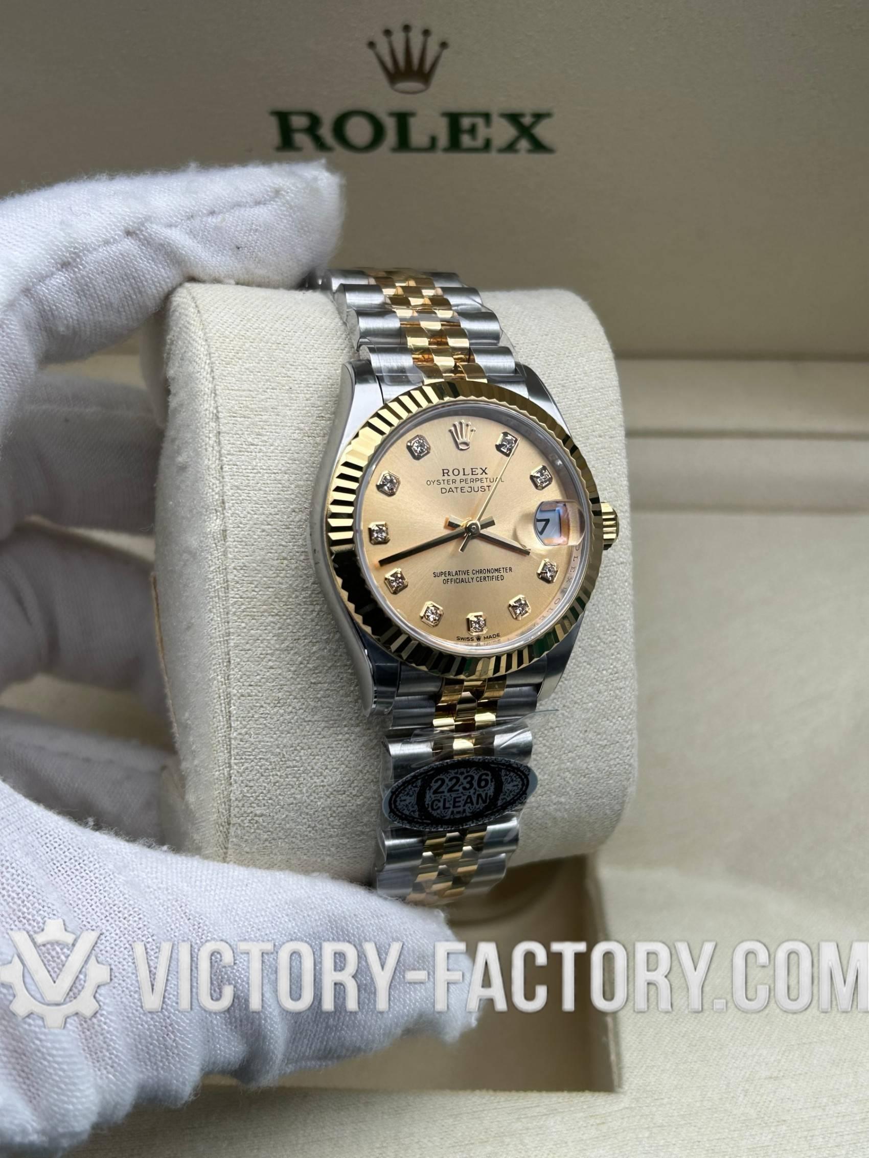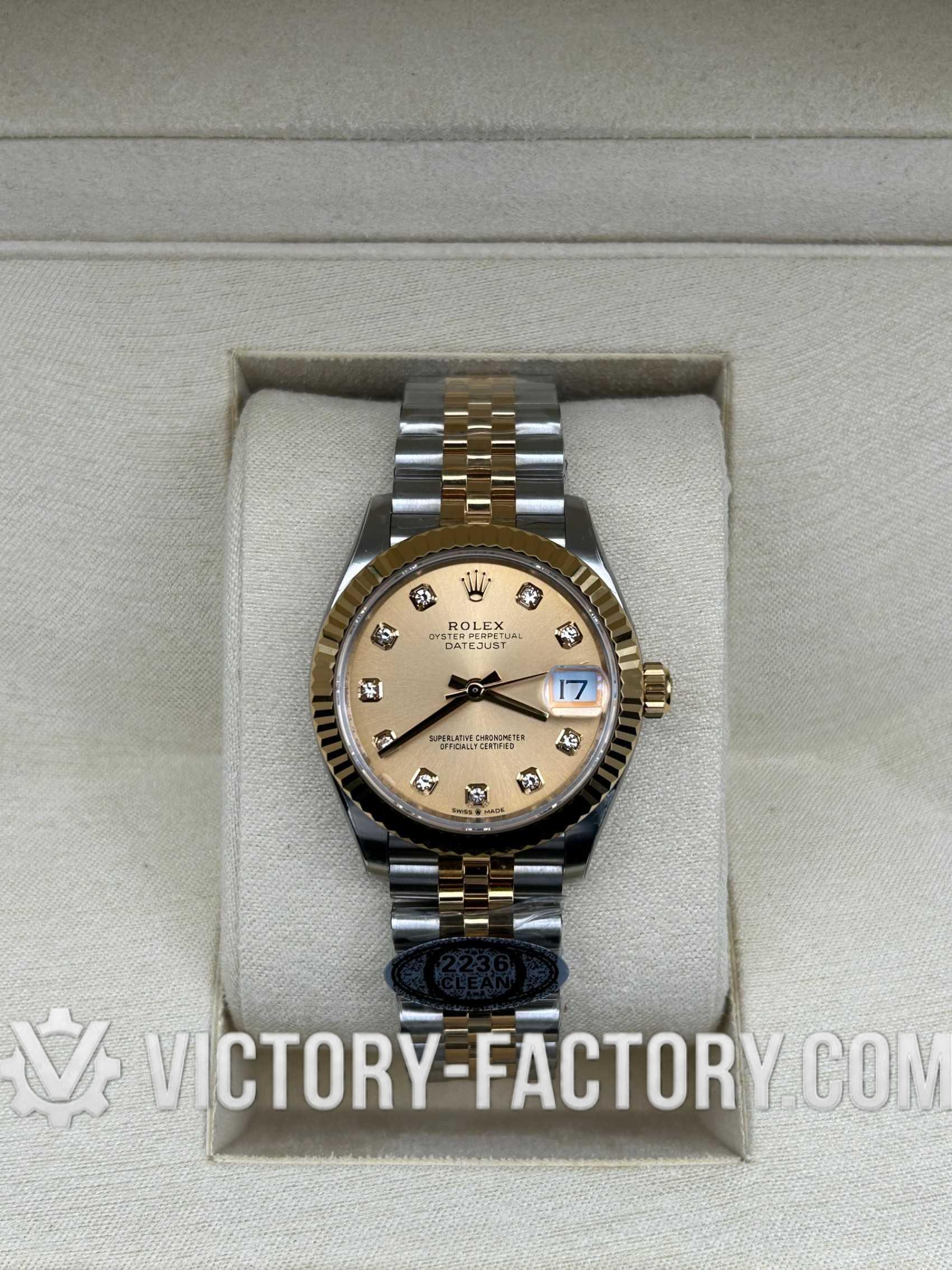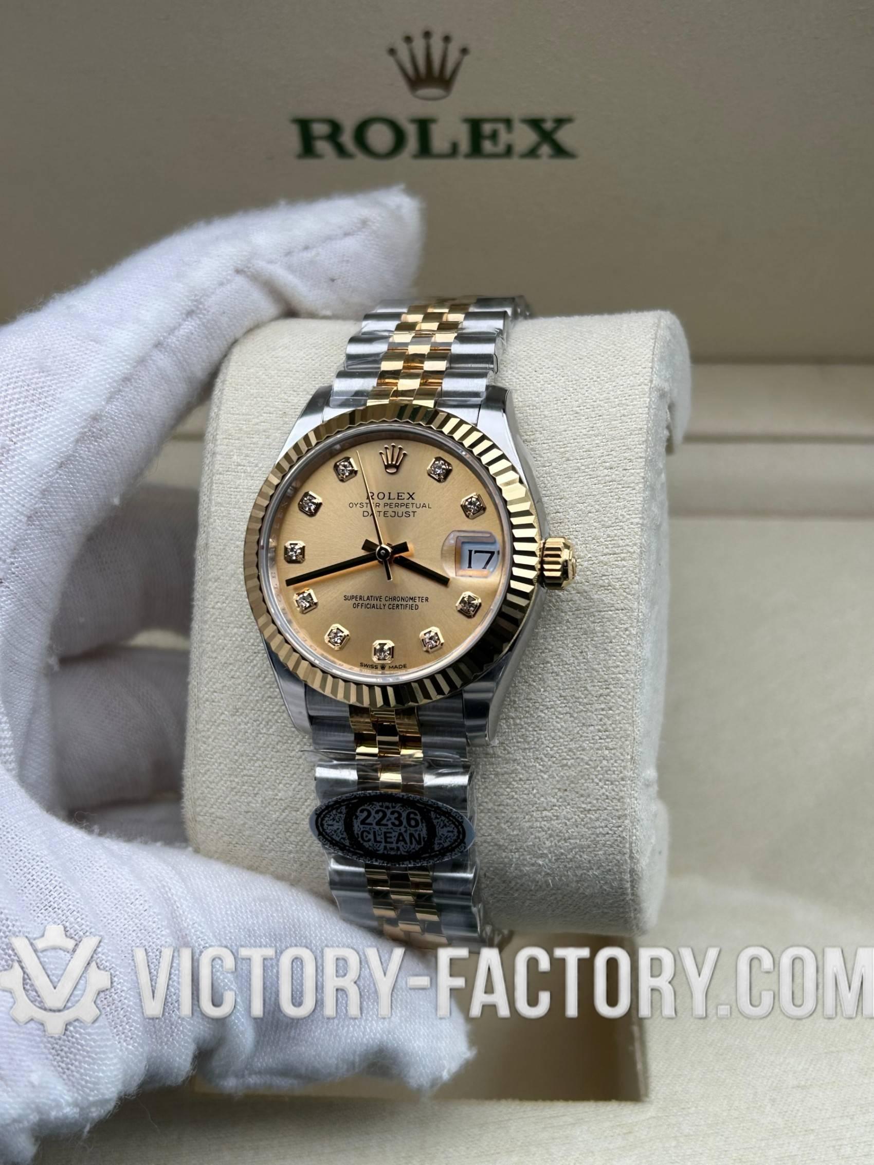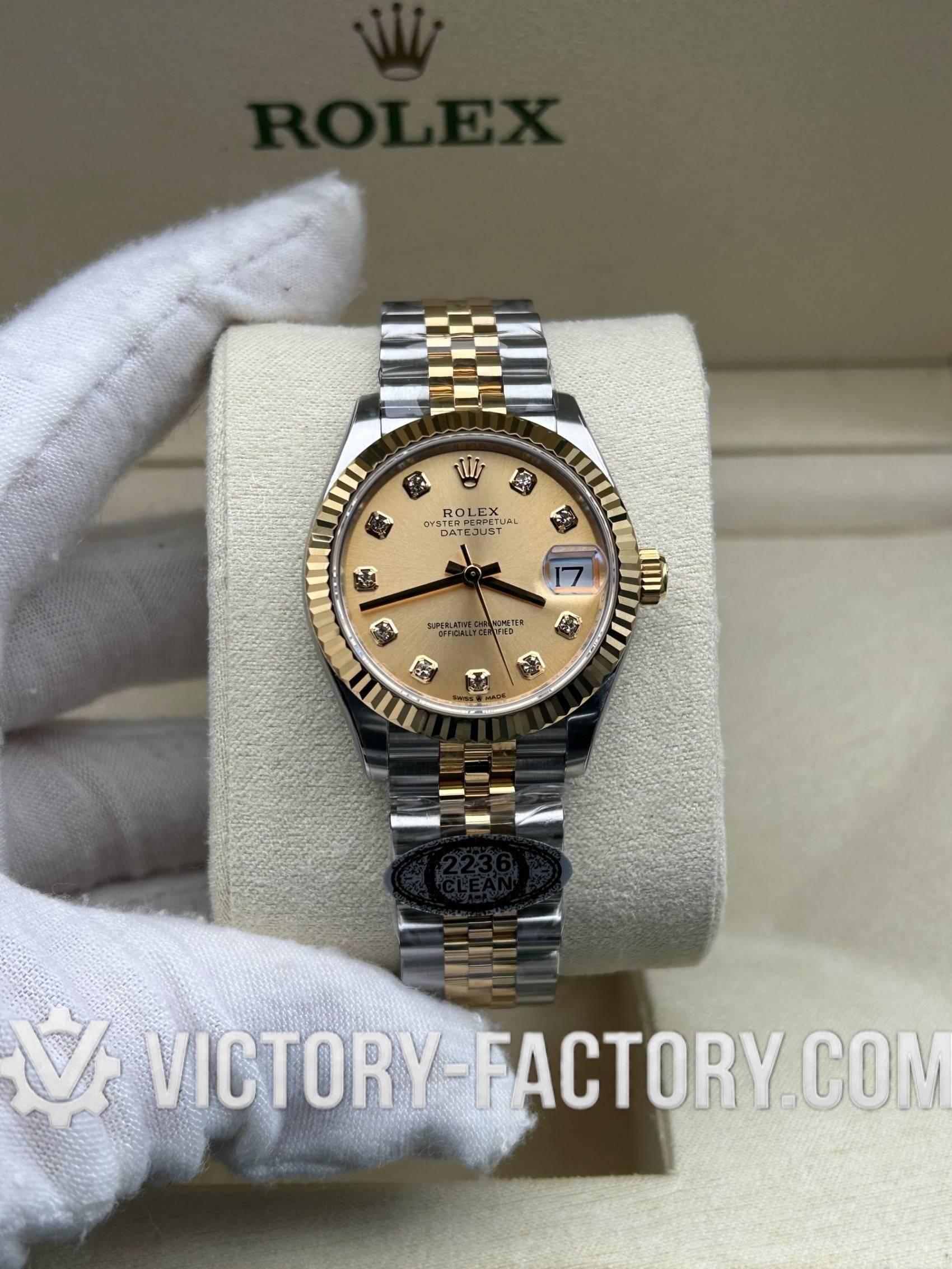 Overview: Victory Factory (VF) presents the pinnacle of the 31mm Lady-Datejust collection. By perfectly inheriting the industry-leading exterior components from Clean Factory and pairing them with the unparalleled stability of the Dandong Custom Movement, VF has created a “Super Clone” that stands alone in quality and authenticity.