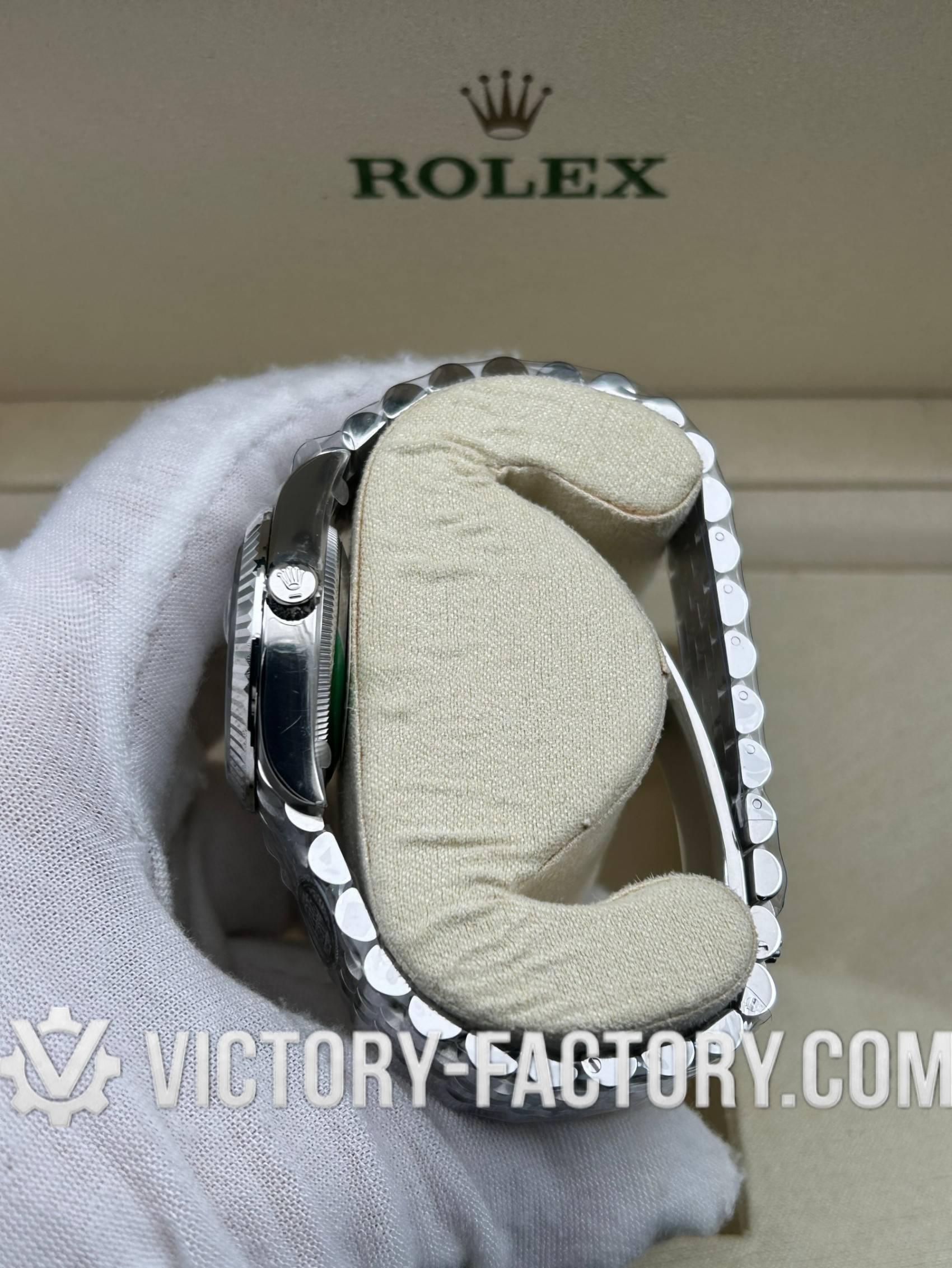 CASE: The 31mm Oyster case is crafted from solid 904L Stainless Steel in a monobloc construction, offering the same rust-proof properties as Rolex’s ‘Oystersteel’. It features a screw-down case-back and a Twinlock double waterproof crown for superior water resistance. The ‘ROLEX ROLEX’ laser engraving on the Rehaut Ring is expertly aligned to achieve a perfect 1:1 match.
