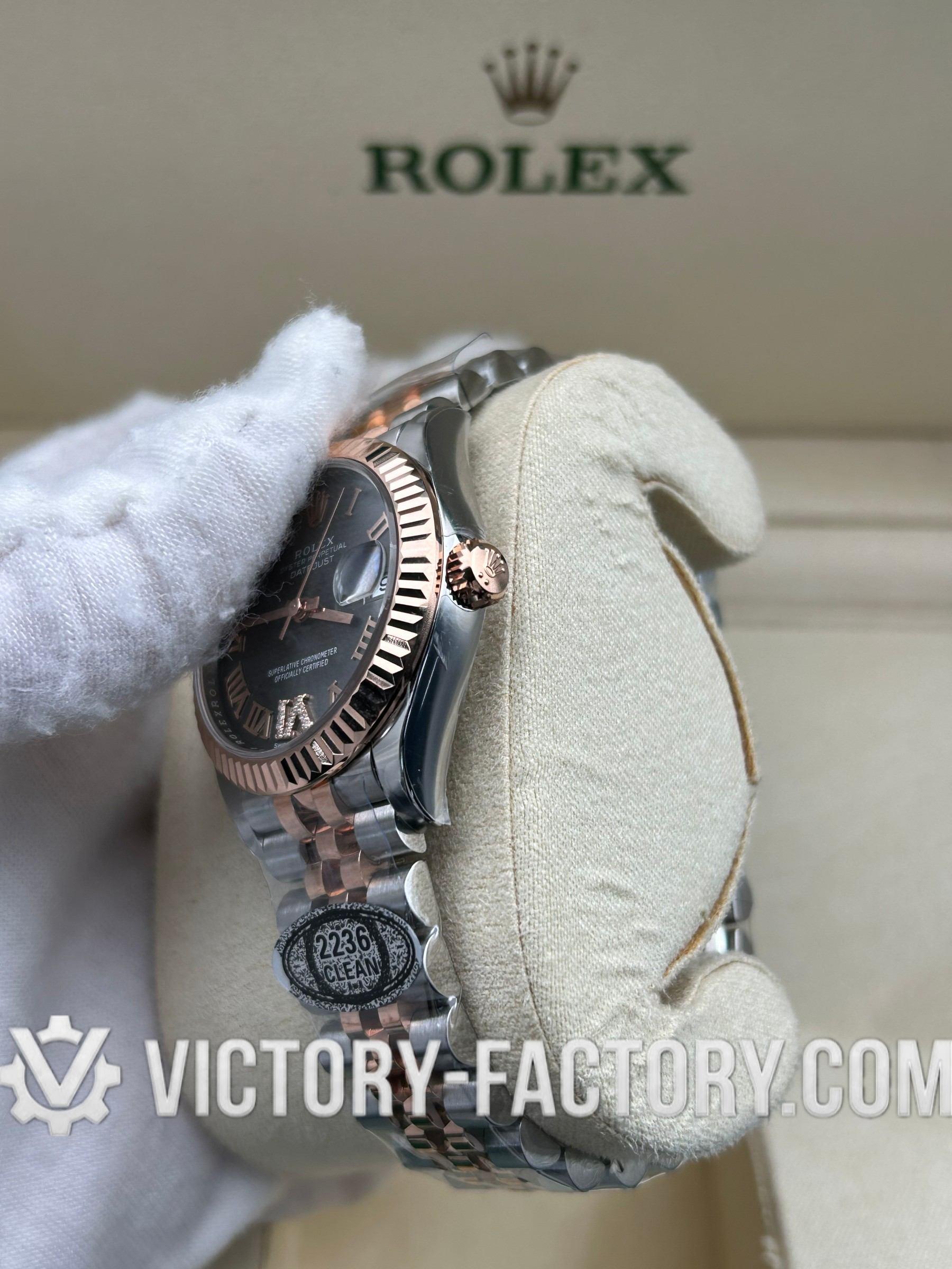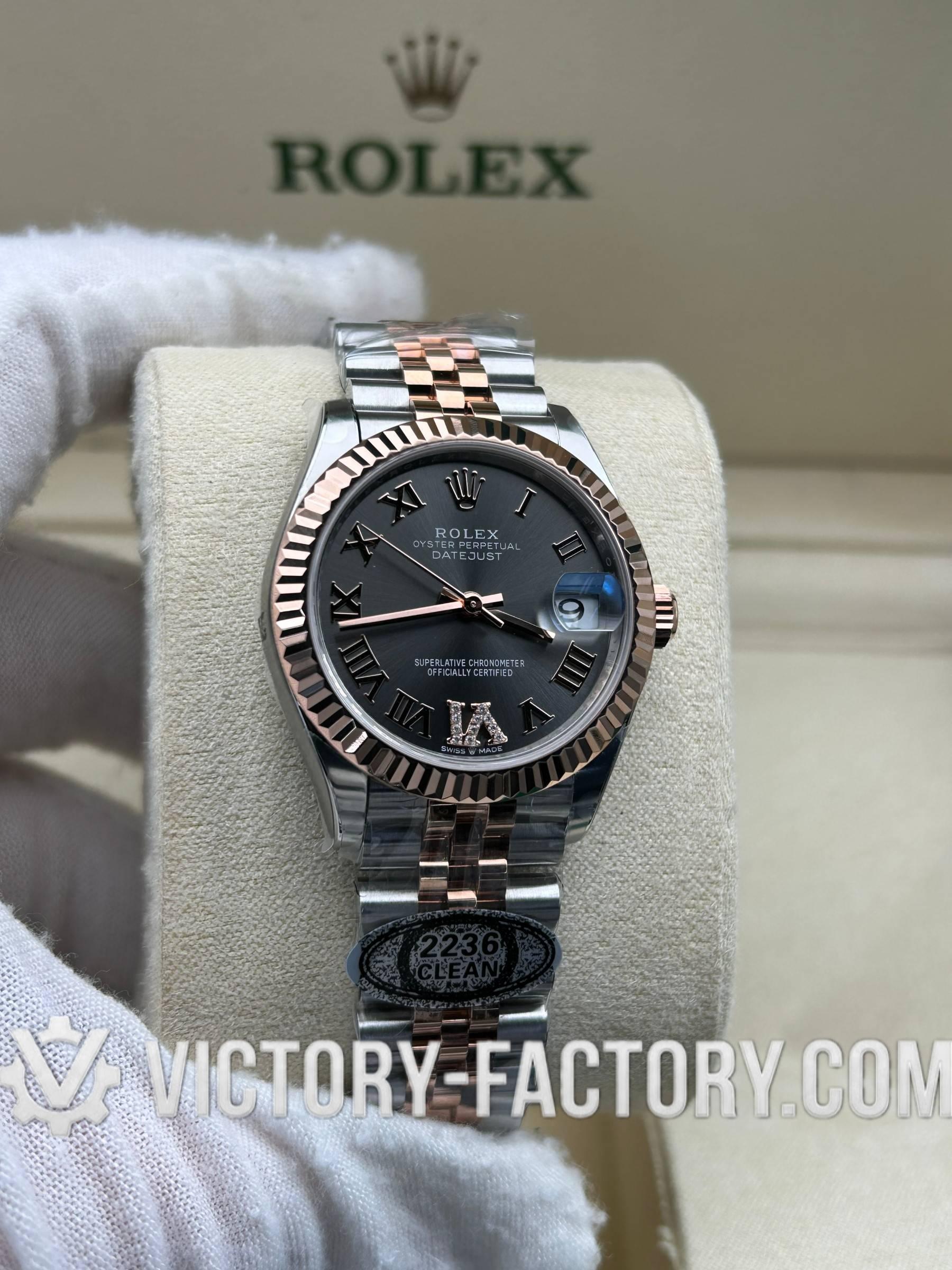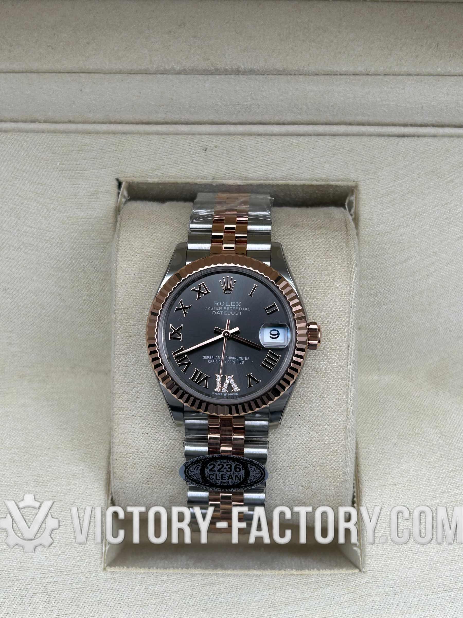 Overview: Victory Factory (VF) presents the definitive 1:1 Super Clone of the Lady-Datejust 31mm Ref. 278274 in the prestigious “Wimbledon” configuration. This “Hybrid Masterpiece” achieves a new industry pinnacle by seamlessly integrating Clean Factory’s (CF) premium exterior kits—including the high-fidelity Slate Grey dial and 18k Rose Gold wrapping—with the unmatched stability of the Dandong 2236 Integrated Movement. It offers the legendary tennis-inspired aesthetic in a size designed for modern feminine elegance, powered by a professional-grade mechanical soul.
