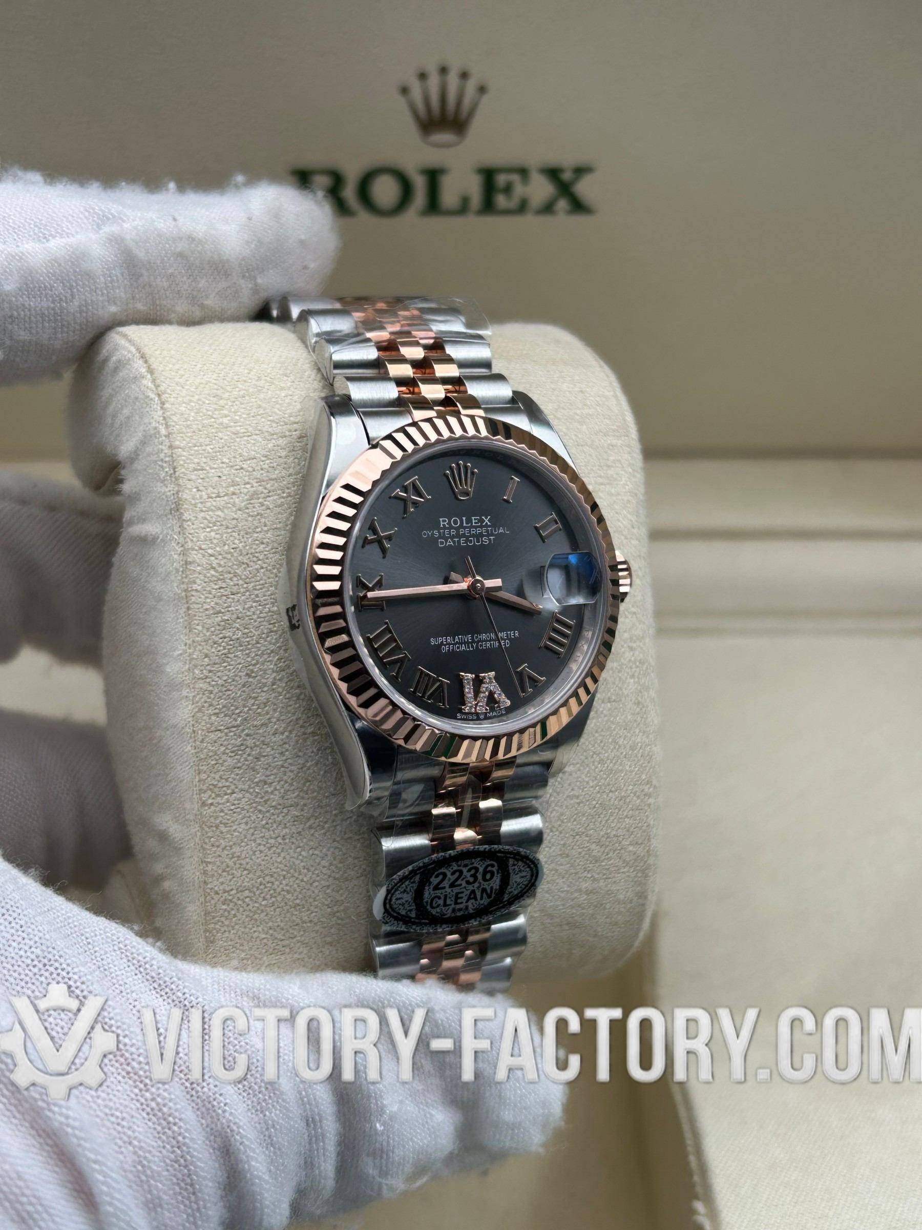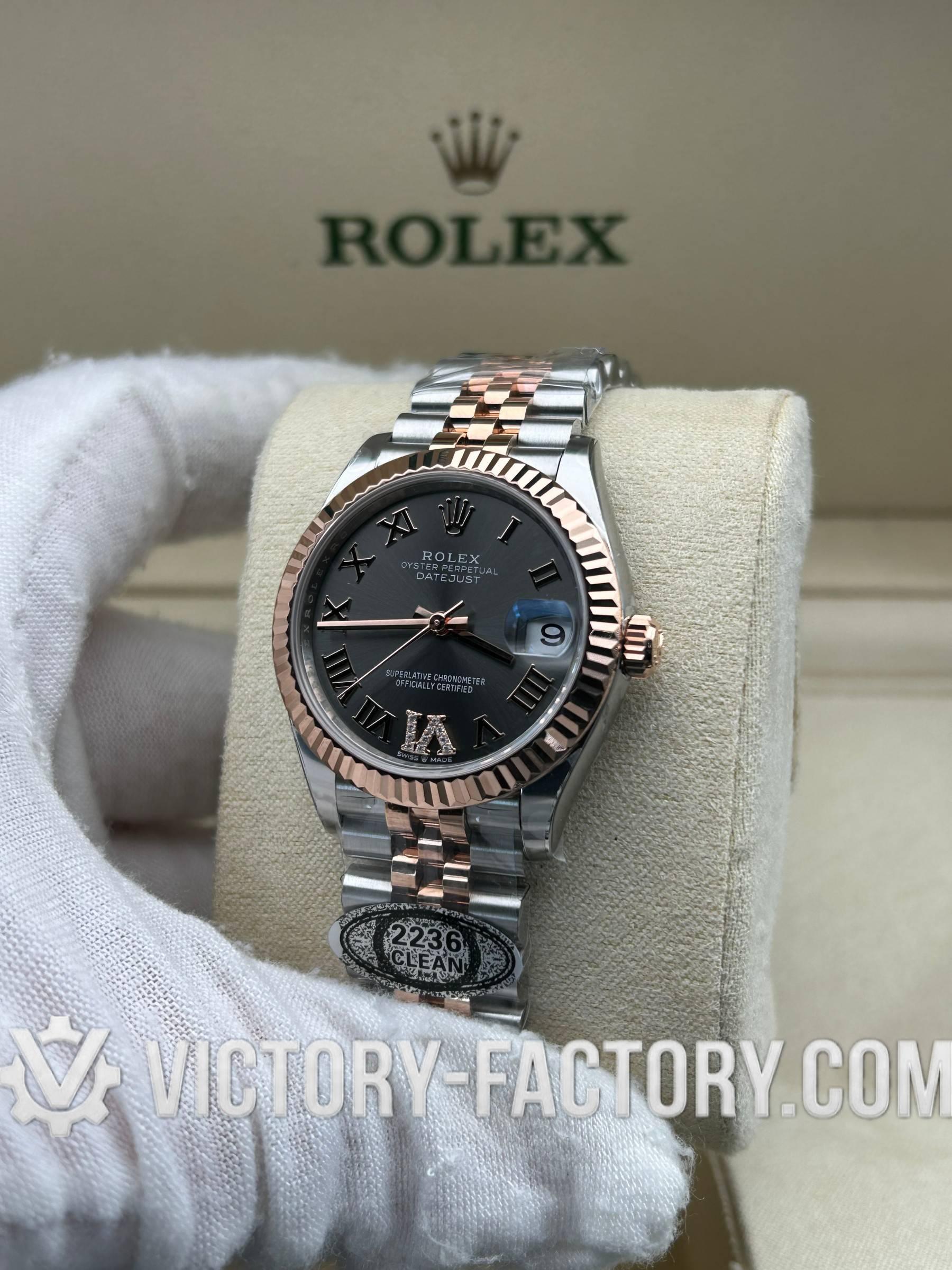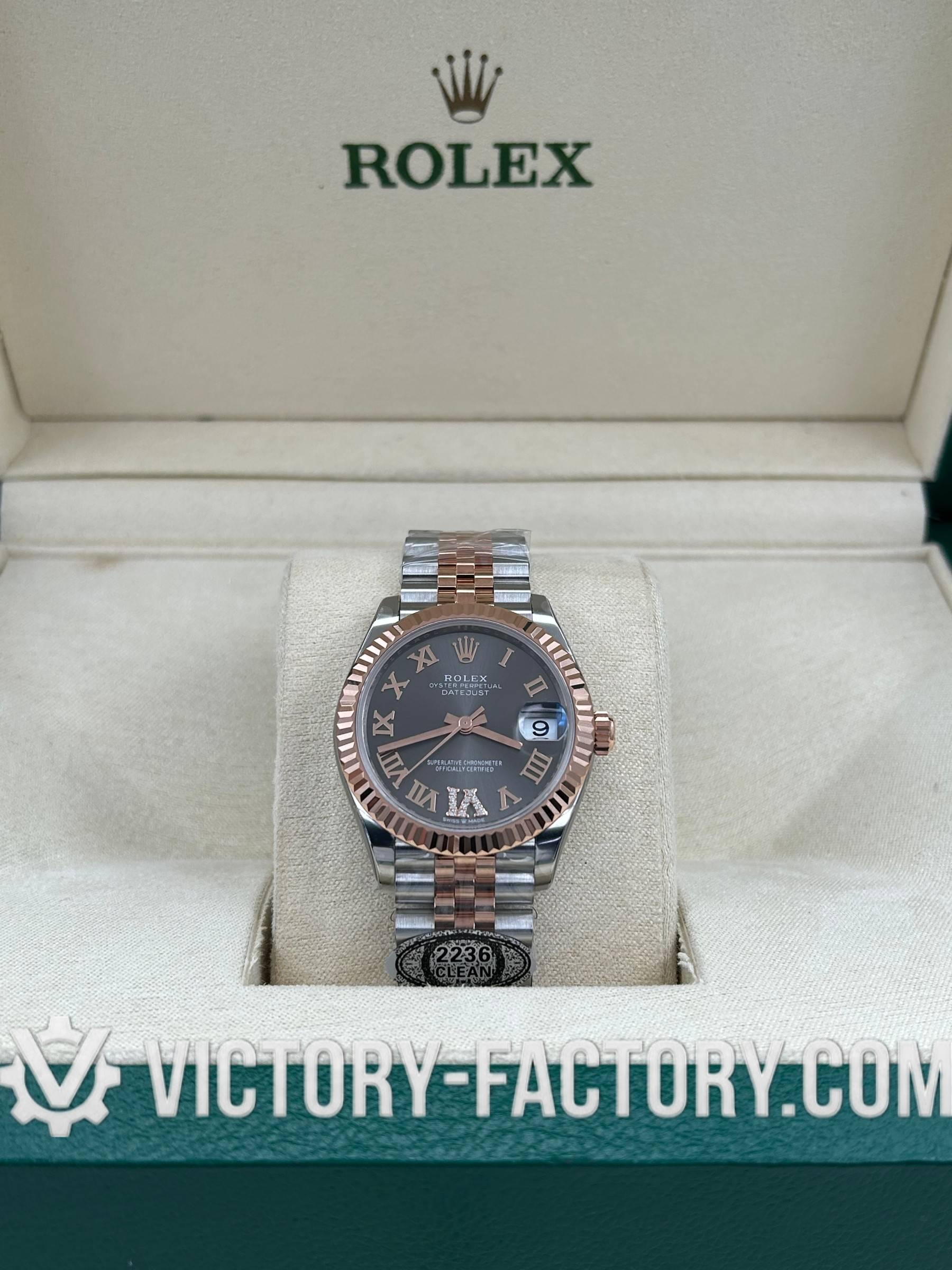 Overview: Victory Factory (VF) presents the definitive 1:1 Super Clone of the Lady-Datejust 31mm Ref. 278274 in the prestigious “Wimbledon” configuration. This “Hybrid Masterpiece” achieves a new industry pinnacle by seamlessly integrating Clean Factory’s (CF) premium exterior kits—including the high-fidelity Slate Grey dial and 18k Rose Gold wrapping—with the unmatched stability of the Dandong 2236 Integrated Movement. It offers the legendary tennis-inspired aesthetic in a size designed for modern feminine elegance, powered by a professional-grade mechanical soul.