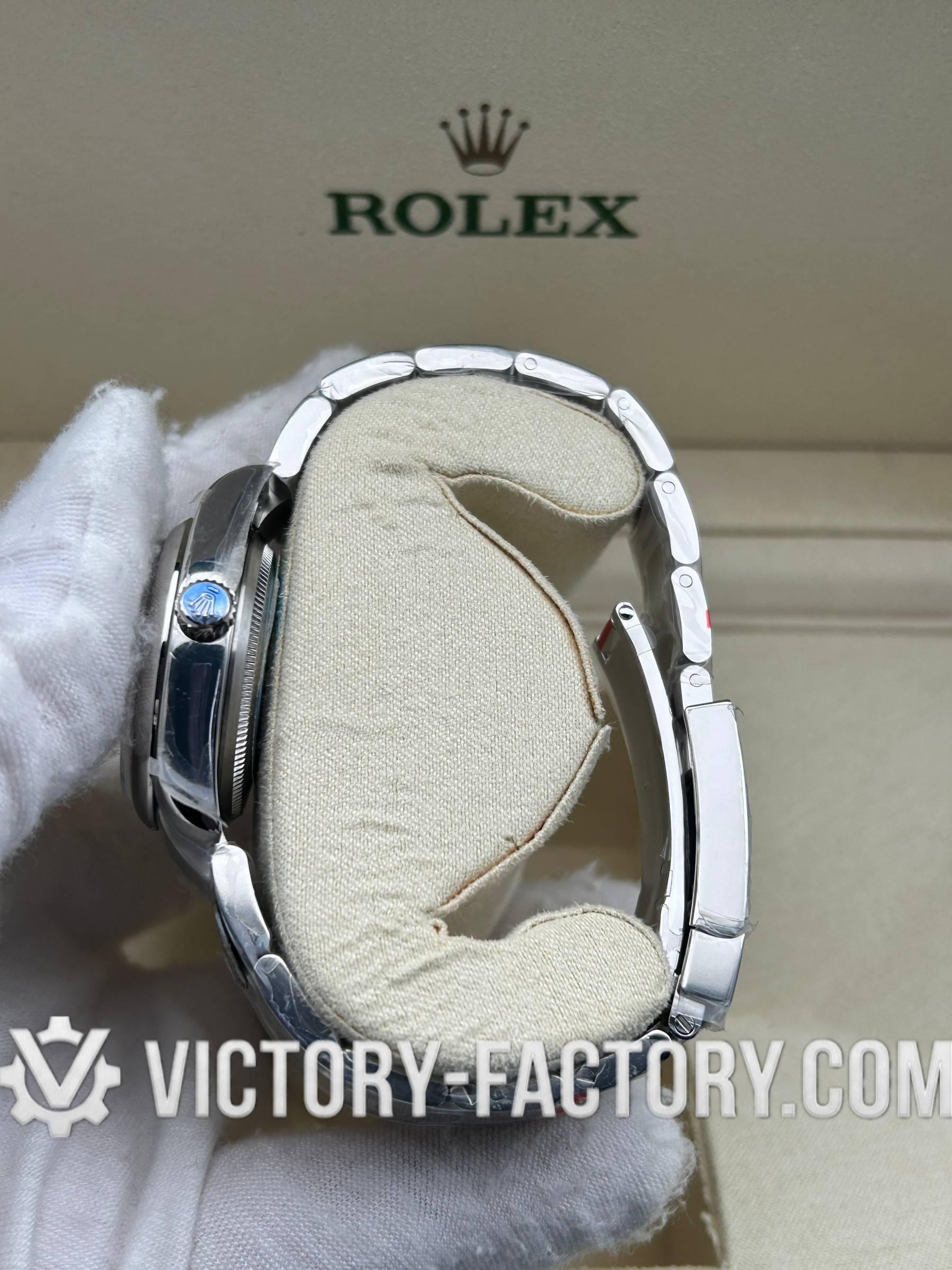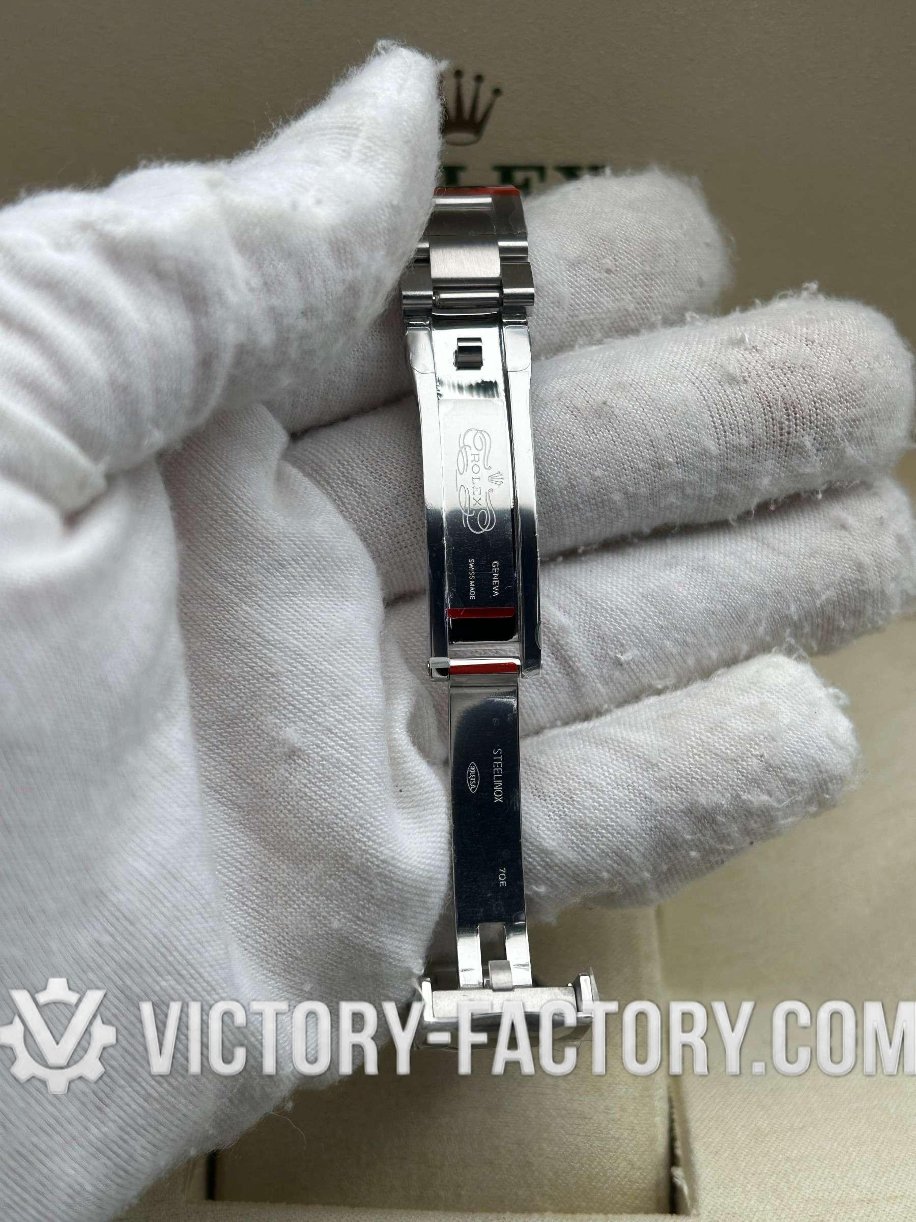 CASE: The 31mm Oyster case is crafted from solid 904L stainless steel in a monobloc construction. It features a screw-down case-back and winding crown for enhanced water resistance. The rehaut ring is laser-engraved with ‘ROLEX ROLEX’, ensuring correct alignment and a 1:1 match with the original.
