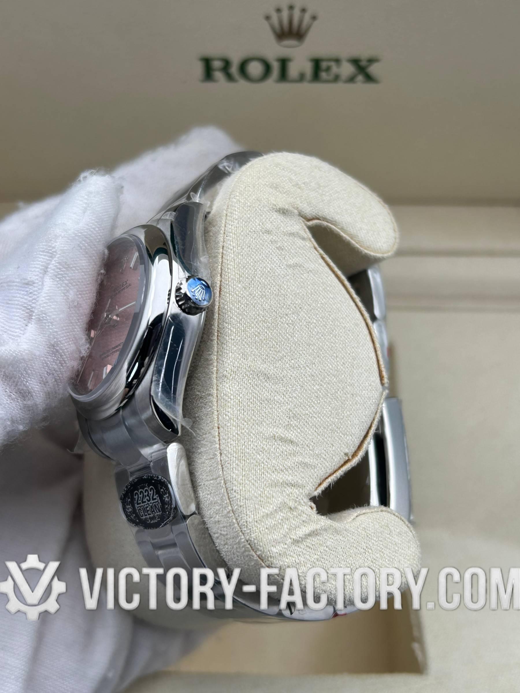 Overview: Victory Factory (VF) introduces the definitive 1:1 Super Clone of the Oyster Perpetual 31mm Ref. 277200 in the sought-after Pink dial finish. This “Hybrid Masterpiece” achieves a new industry standard by perfectly inheriting Clean Factory’s (CF) world-class exterior craftsmanship—renowned for its 1:1 color accuracy—and integrating the high-performance Dandong 2232 Integrated Movement. It is designed for those who demand the finest visual details paired with an authentic mechanical soul.