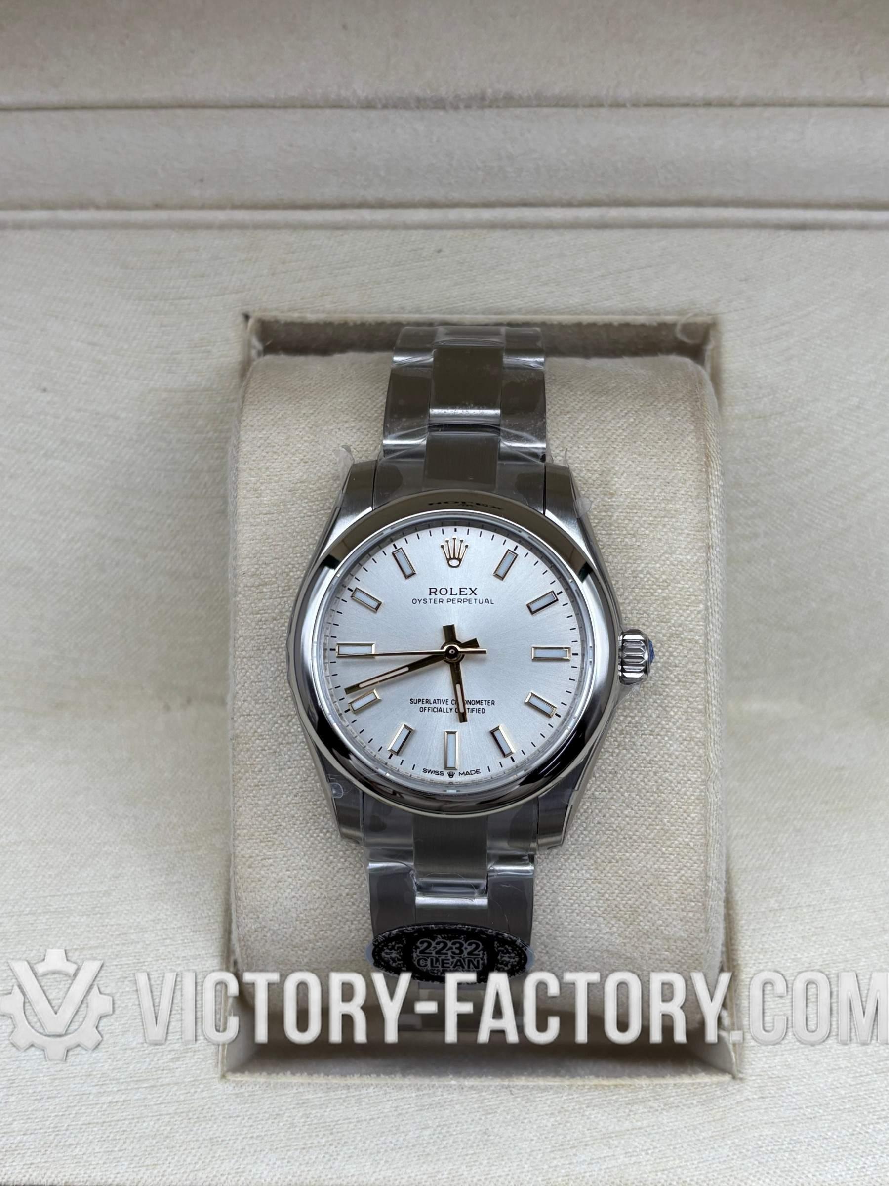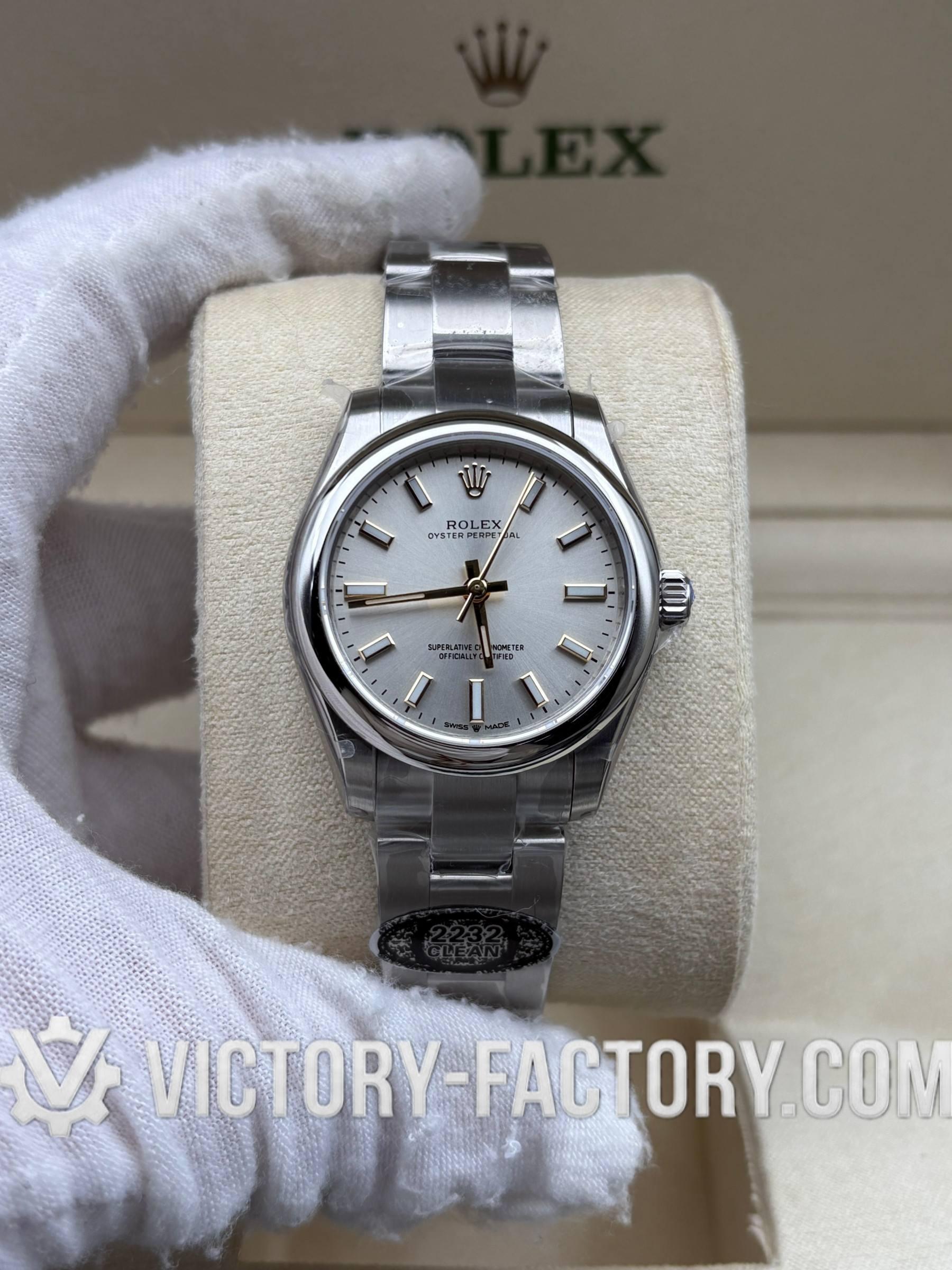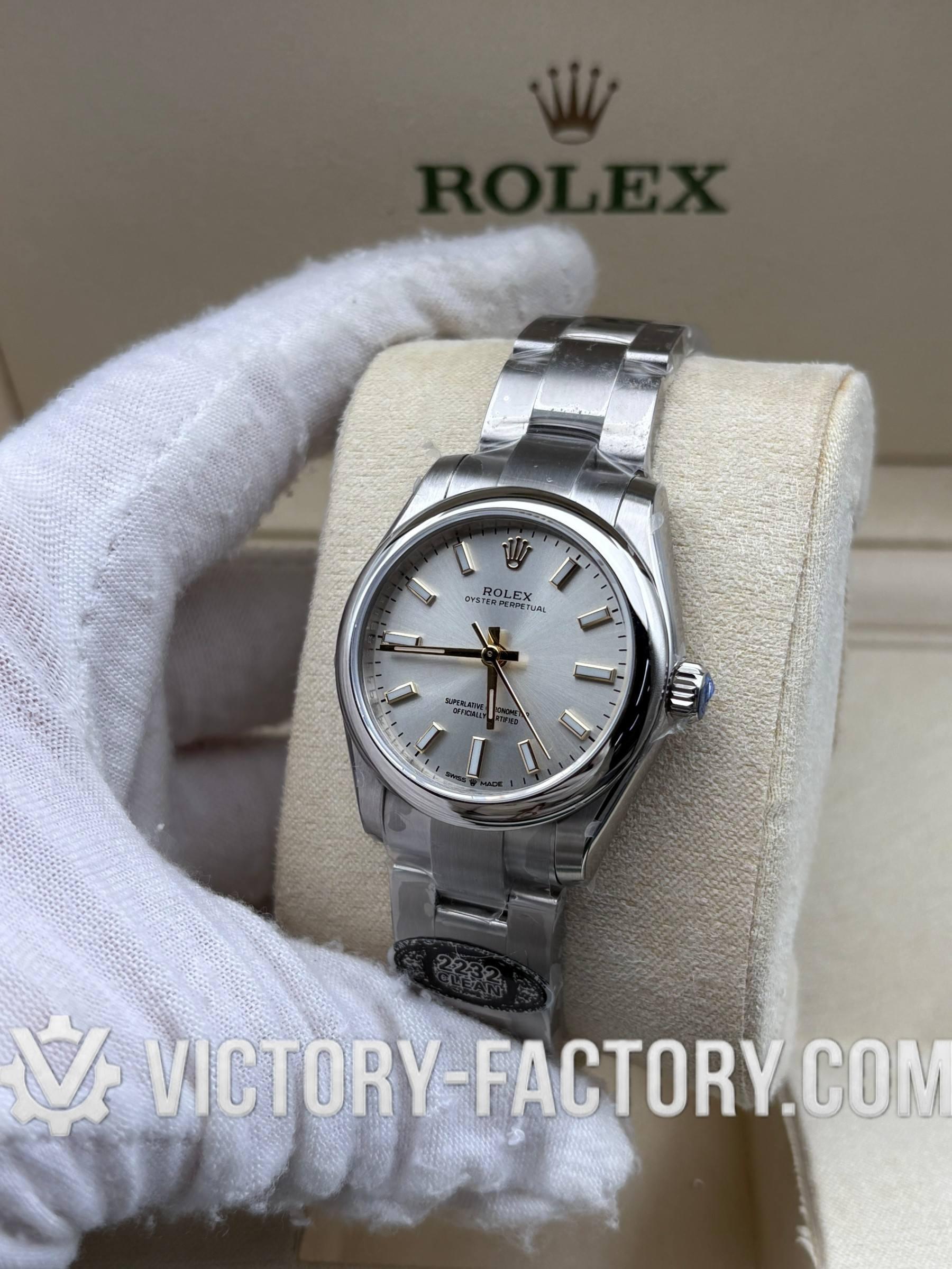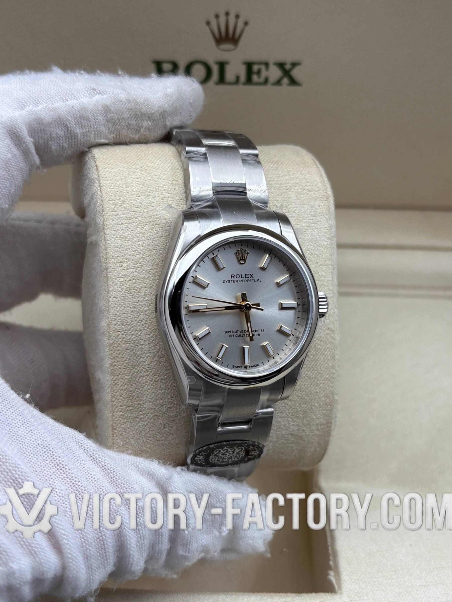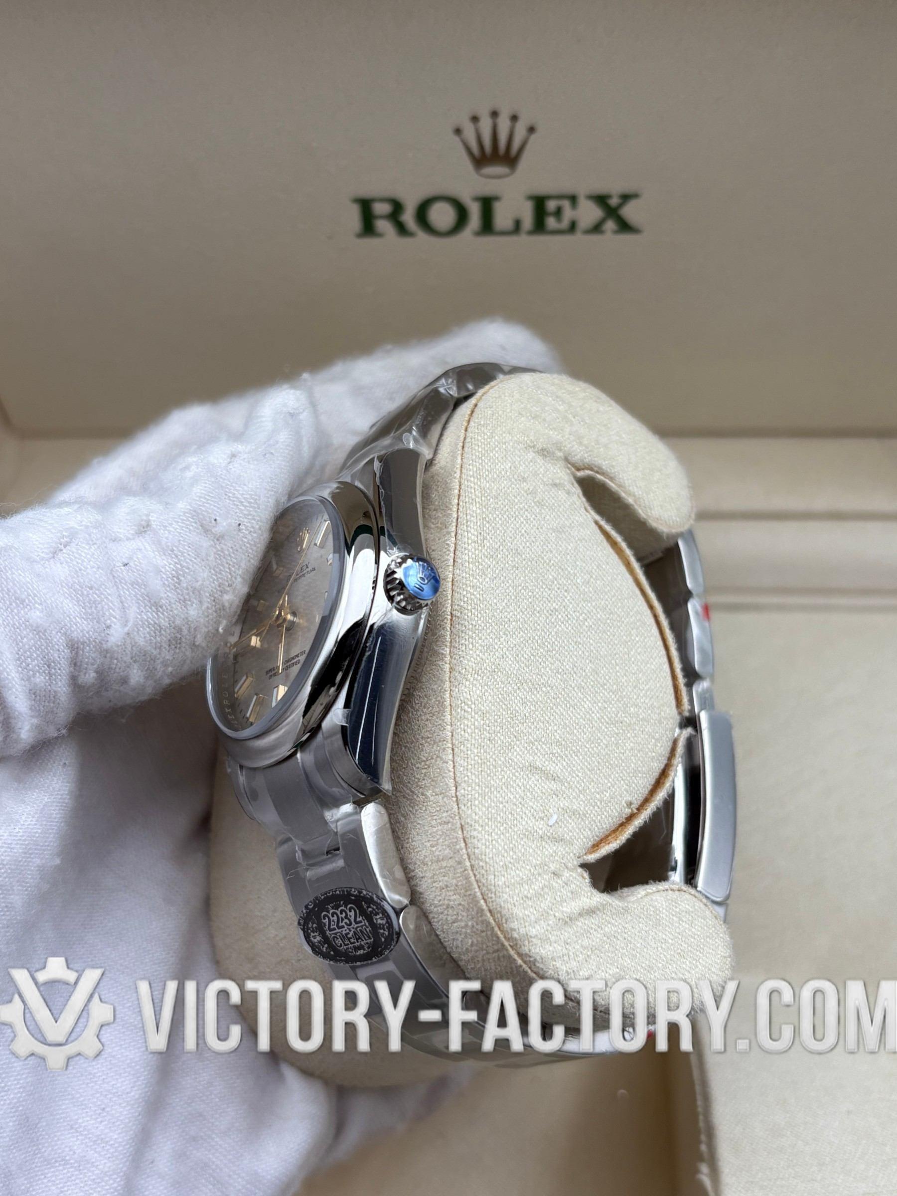 Overview: Victory Factory (VF) presents the definitive 1:1 Super Clone of the Oyster Perpetual 31mm Ref. 277200 with the sophisticated sunray silver dial. This “Hybrid Masterpiece” sets a new market benchmark by seamlessly integrating Clean Factory’s (CF) world-class exterior components—renowned for their 1:1 color depth and steel finishing—with the high-performance Dandong 2232 Integrated Movement. It is the ultimate choice for enthusiasts who demand original-grade visual details paired with a reliable, Swiss-standard mechanical soul.