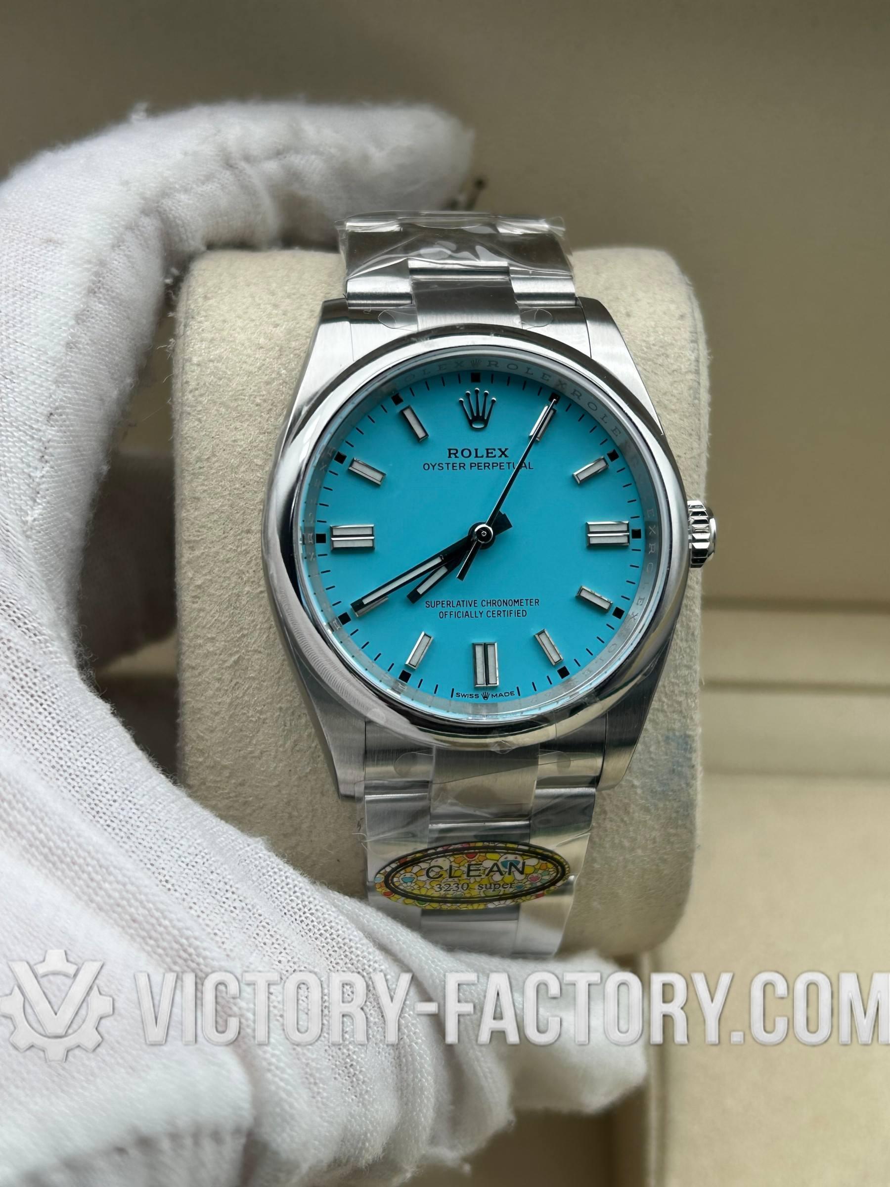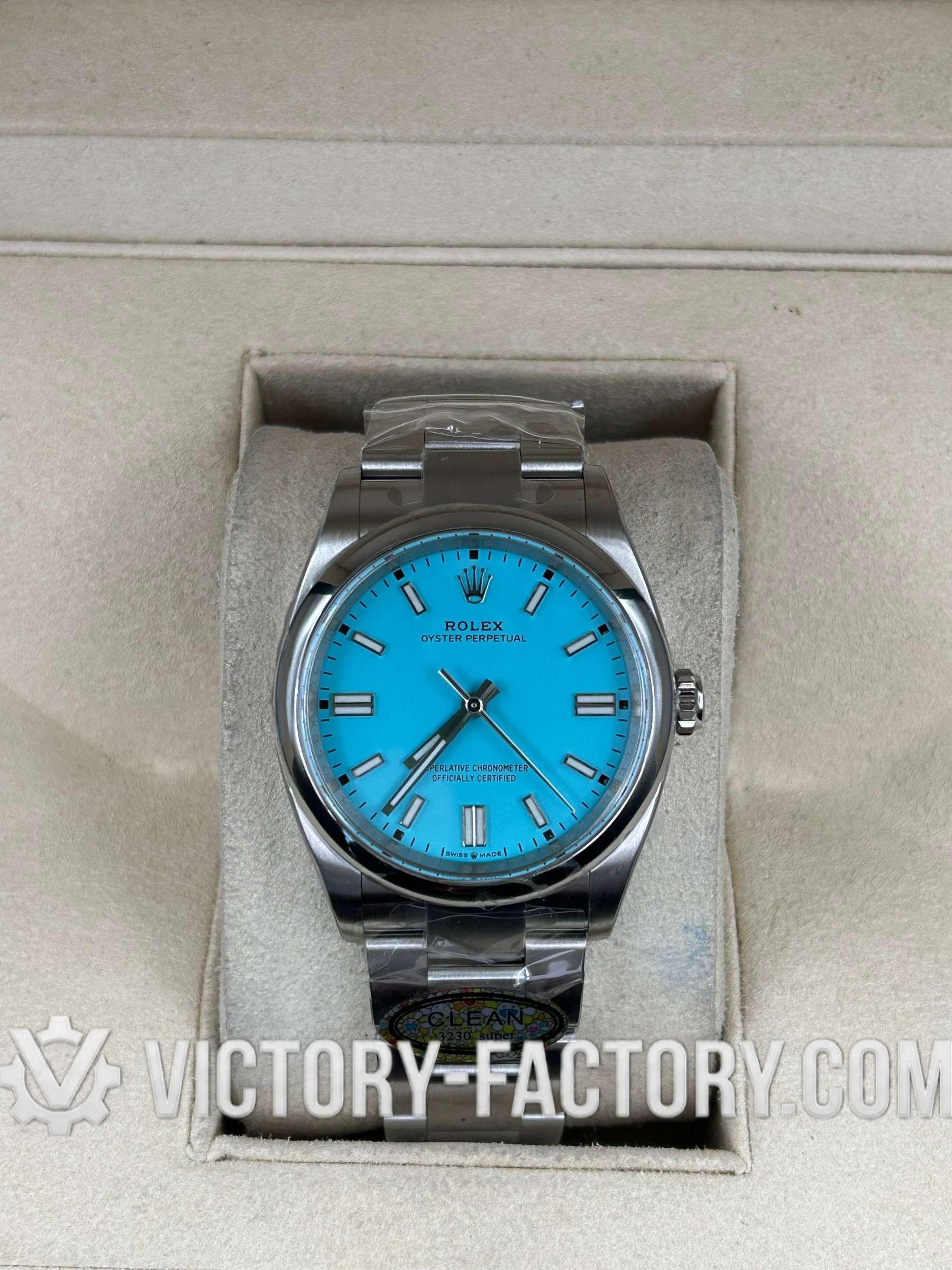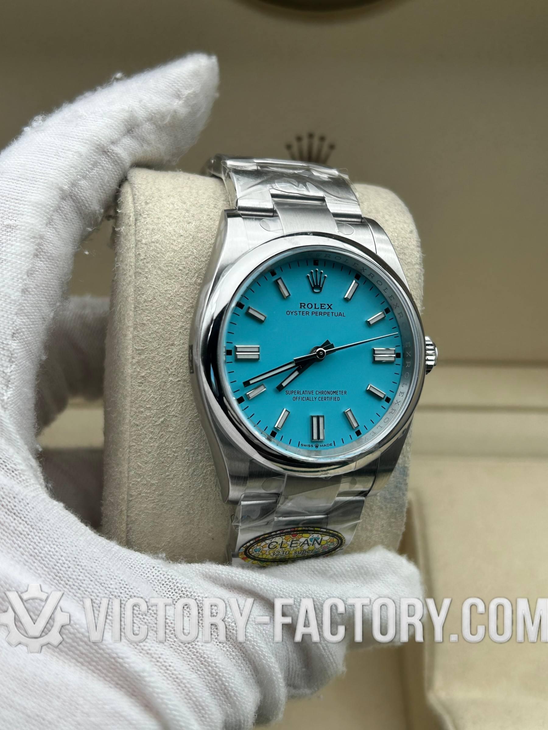 Overview: Victory Factory (VF) presents the definitive 1:1 Super Clone of the Oyster Perpetual 36mm Ref. 126000 in the legendary Tiffany Turquoise Blue dial. This “Hybrid Masterpiece” achieves a new industry standard by perfectly inheriting Clean Factory’s (CF) world-class exterior craftsmanship—famed for its 1:1 color accuracy and 904L steel finishing—and integrating the high-performance Dandong 3230 Integrated Movement. It is the premier choice for collectors demanding a flawless visual match and a robust mechanical heart.