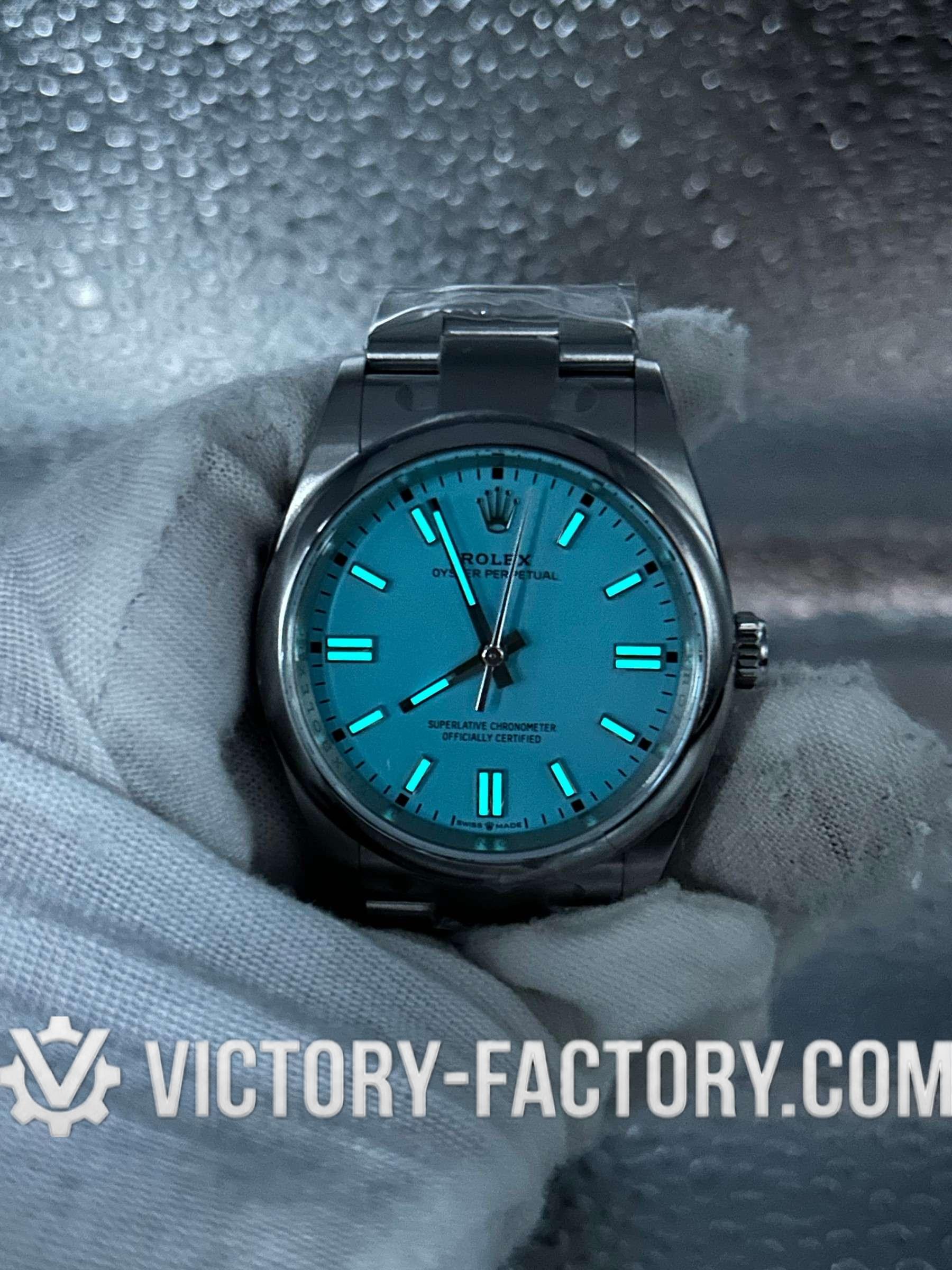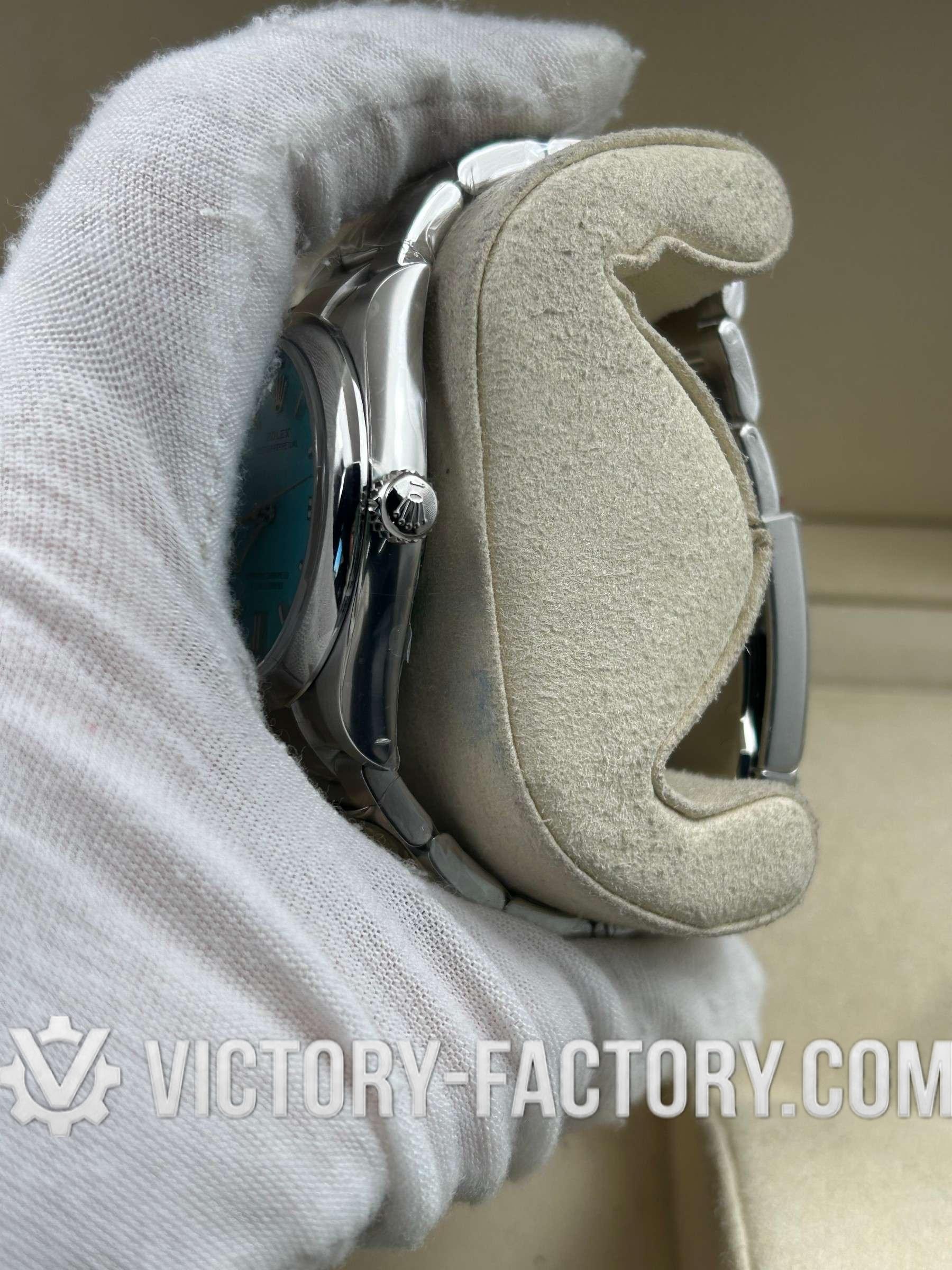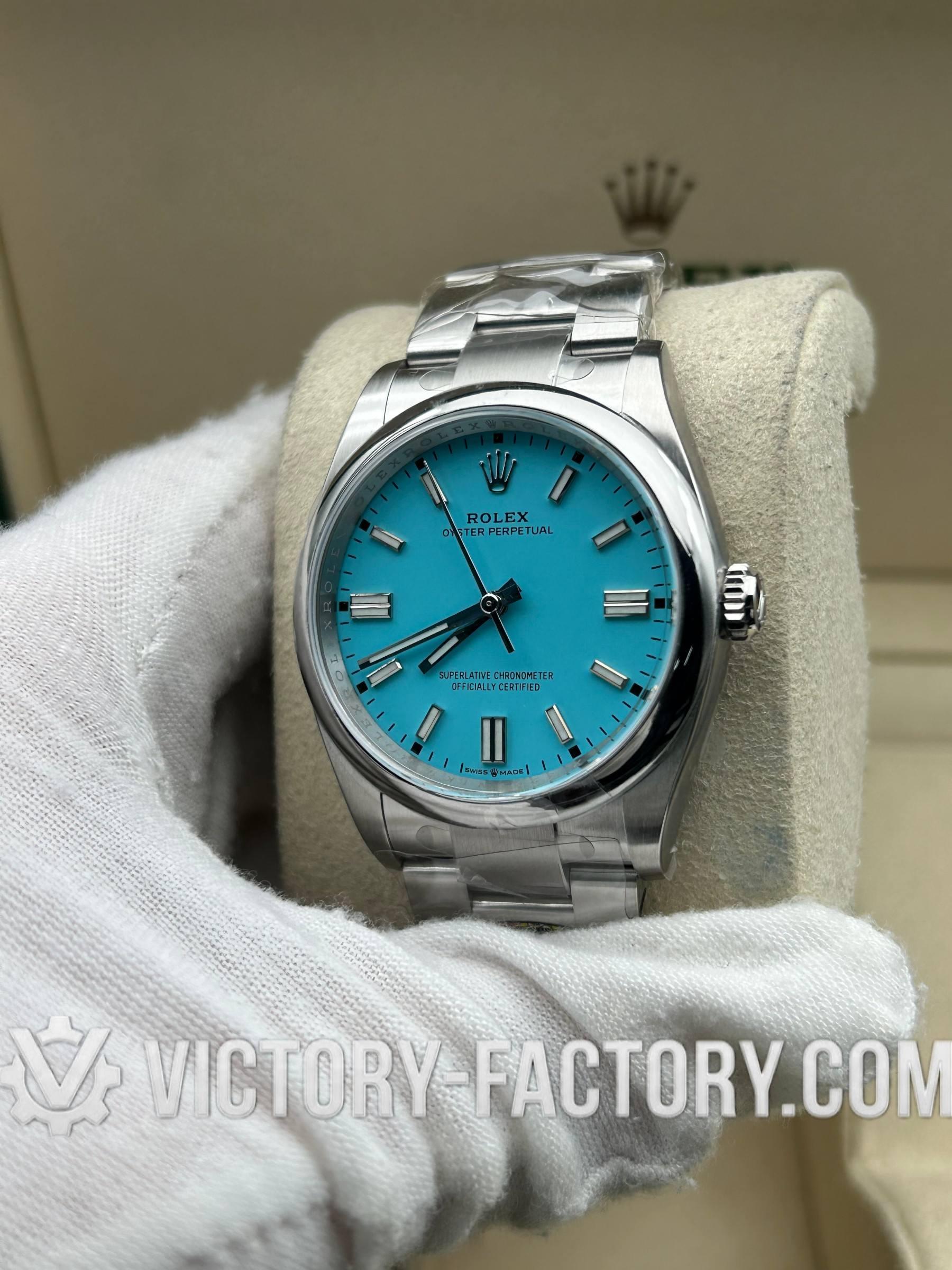 Overview: Victory Factory (VF) presents the definitive 1:1 Super Clone of the Oyster Perpetual 36mm Ref. 126000 in the legendary Tiffany Turquoise Blue dial. This “Hybrid Masterpiece” achieves a new industry standard by perfectly inheriting Clean Factory’s (CF) world-class exterior craftsmanship—famed for its 1:1 color accuracy and 904L steel finishing—and integrating the high-performance Dandong 3230 Integrated Movement. It is the premier choice for collectors demanding a flawless visual match and a robust mechanical heart.