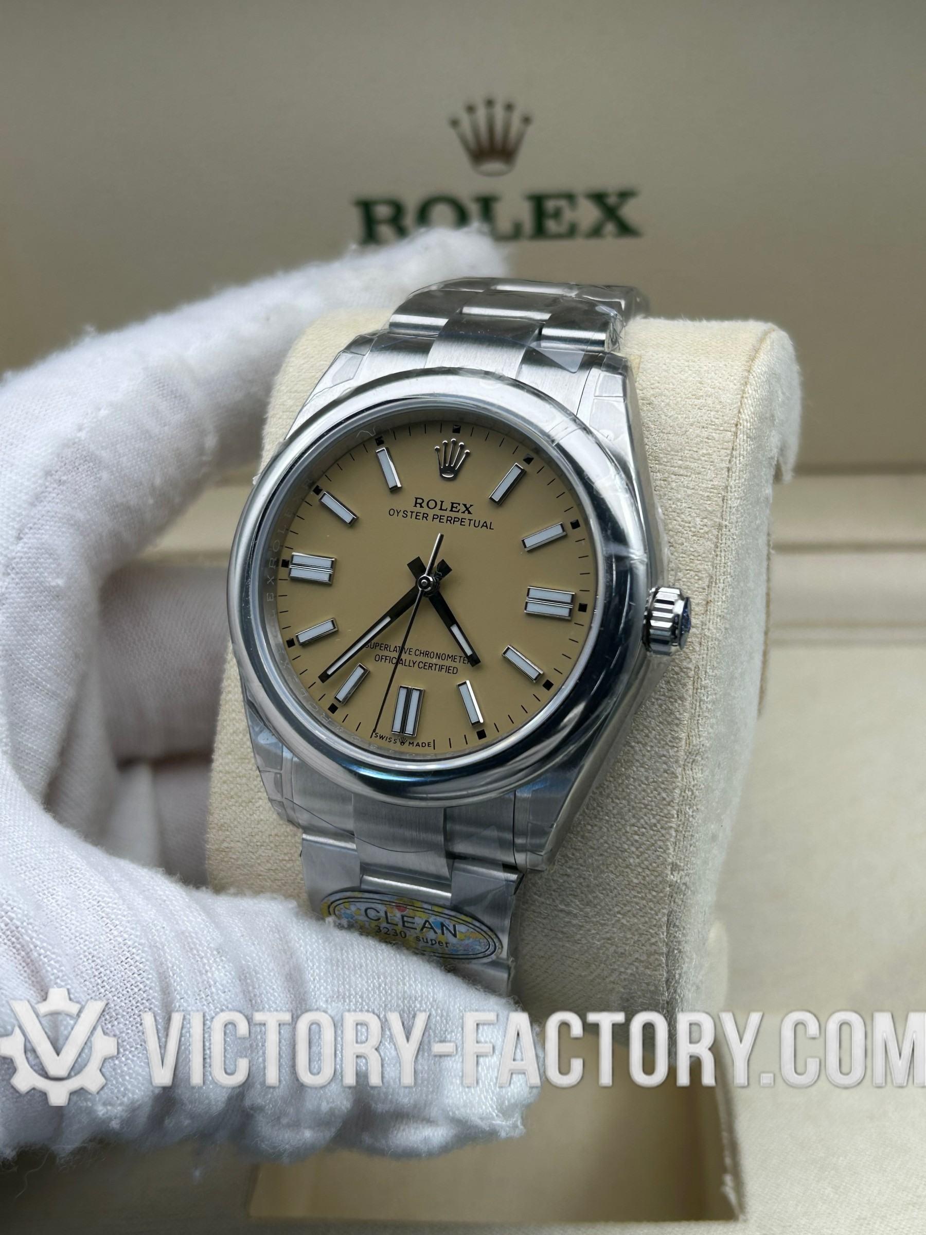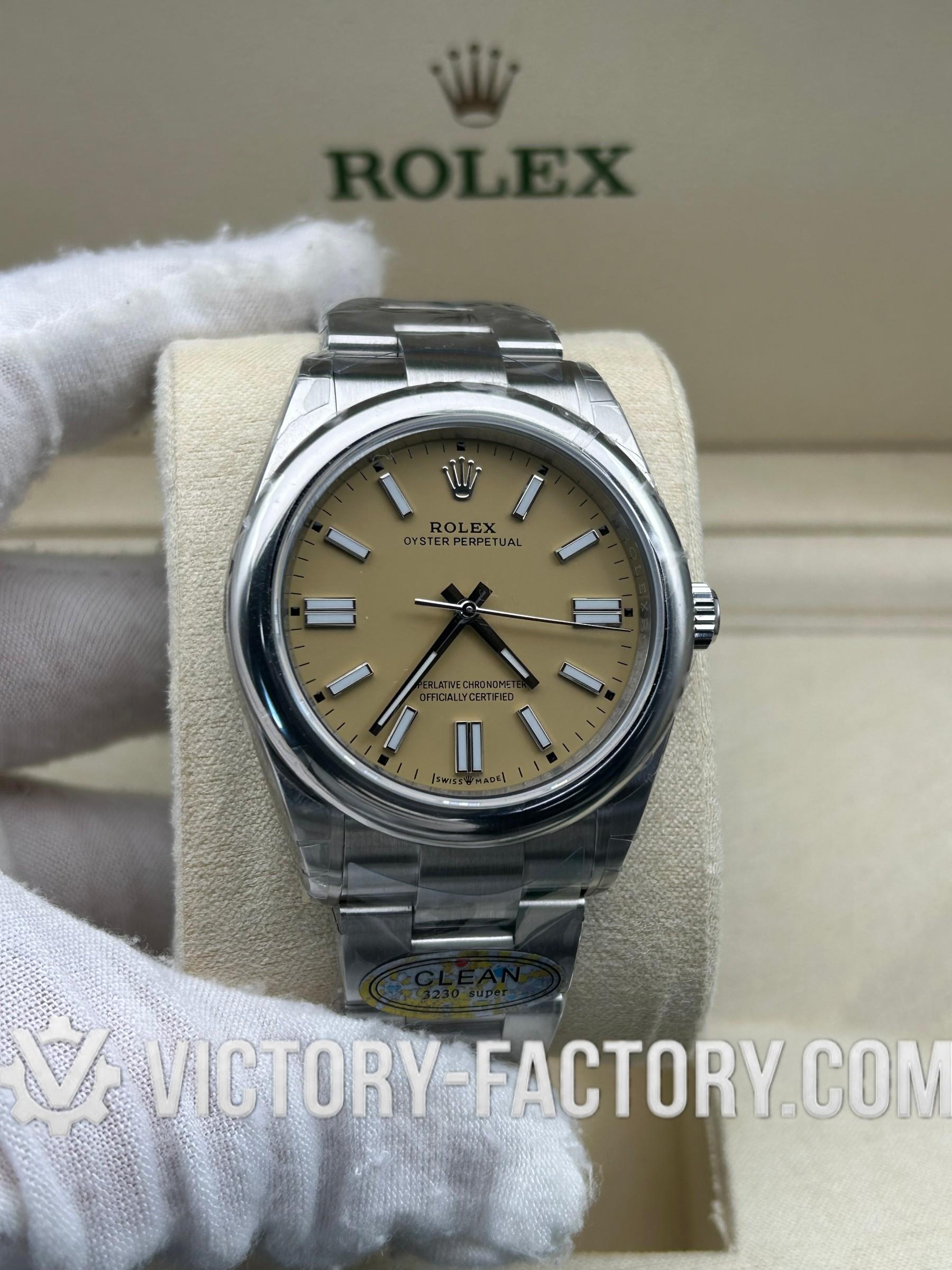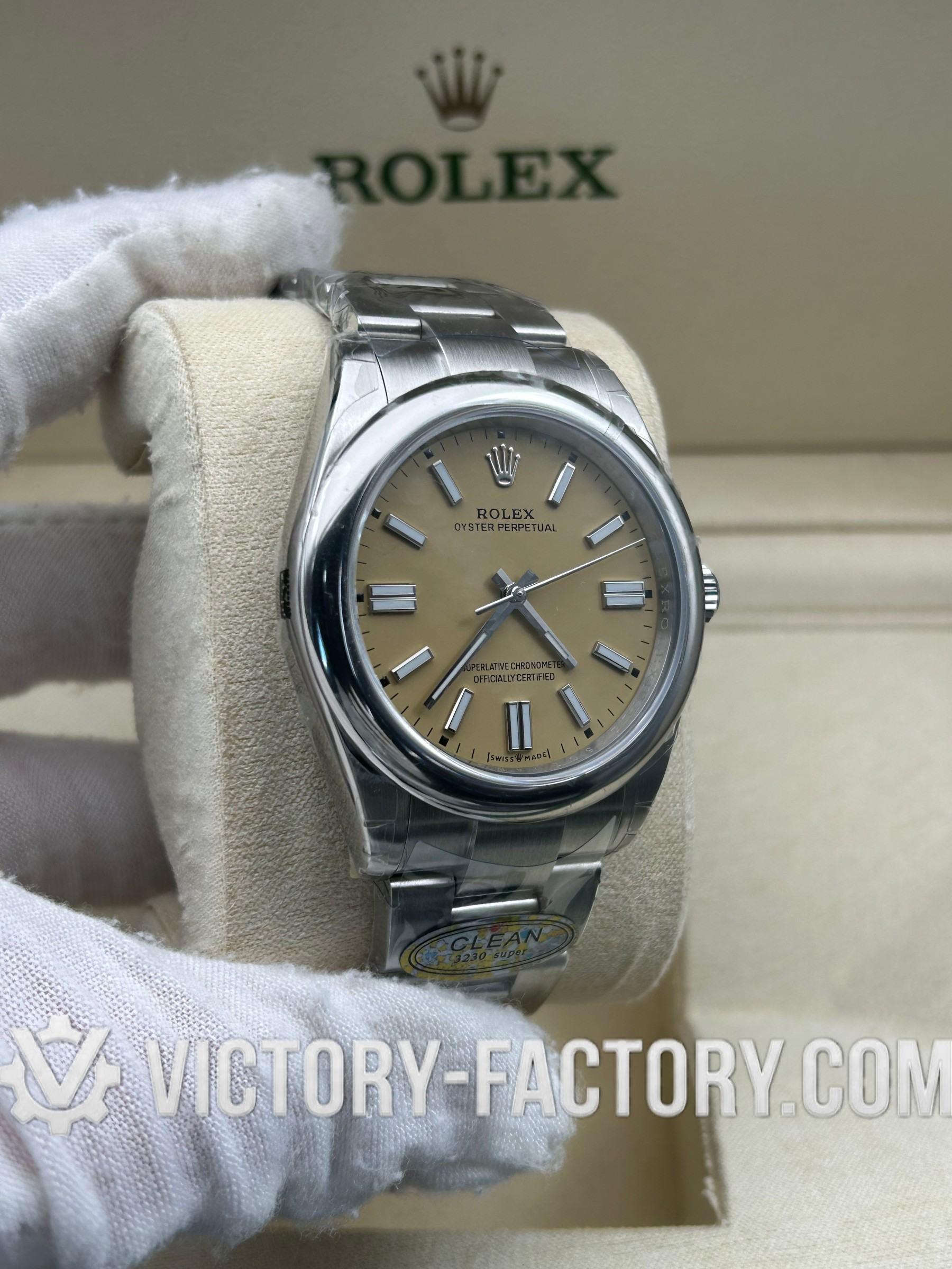 Overview: The Victory Factory (VF) Oyster Perpetual 41mm (Ref. 124300) in Champagne Cream is the ultimate “Hybrid Super Clone.” By perfectly integrating the industry-leading exterior craftsmanship of Clean Factory with the mechanical superiority of the Dandong 3230 movement, Victory Factory offers a timepiece that mirrors the elegance of the original while providing an upgraded 70-hour power reserve.