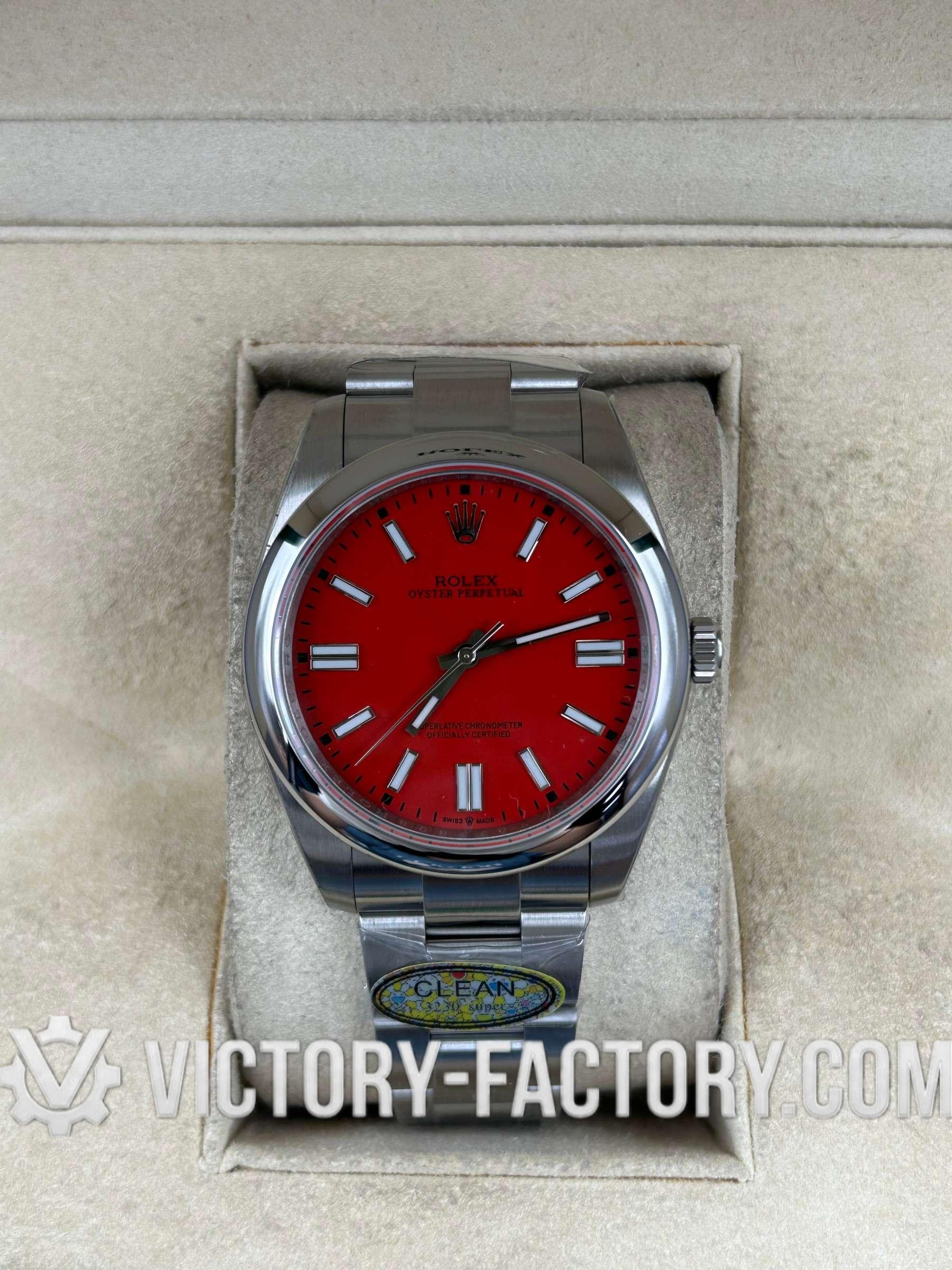 Victory Factory (VF) Rolex Oyster Perpetual 41mm 124300 Red Dial – Super Clone with Clean Factory Parts & Dandong 3230 Movement