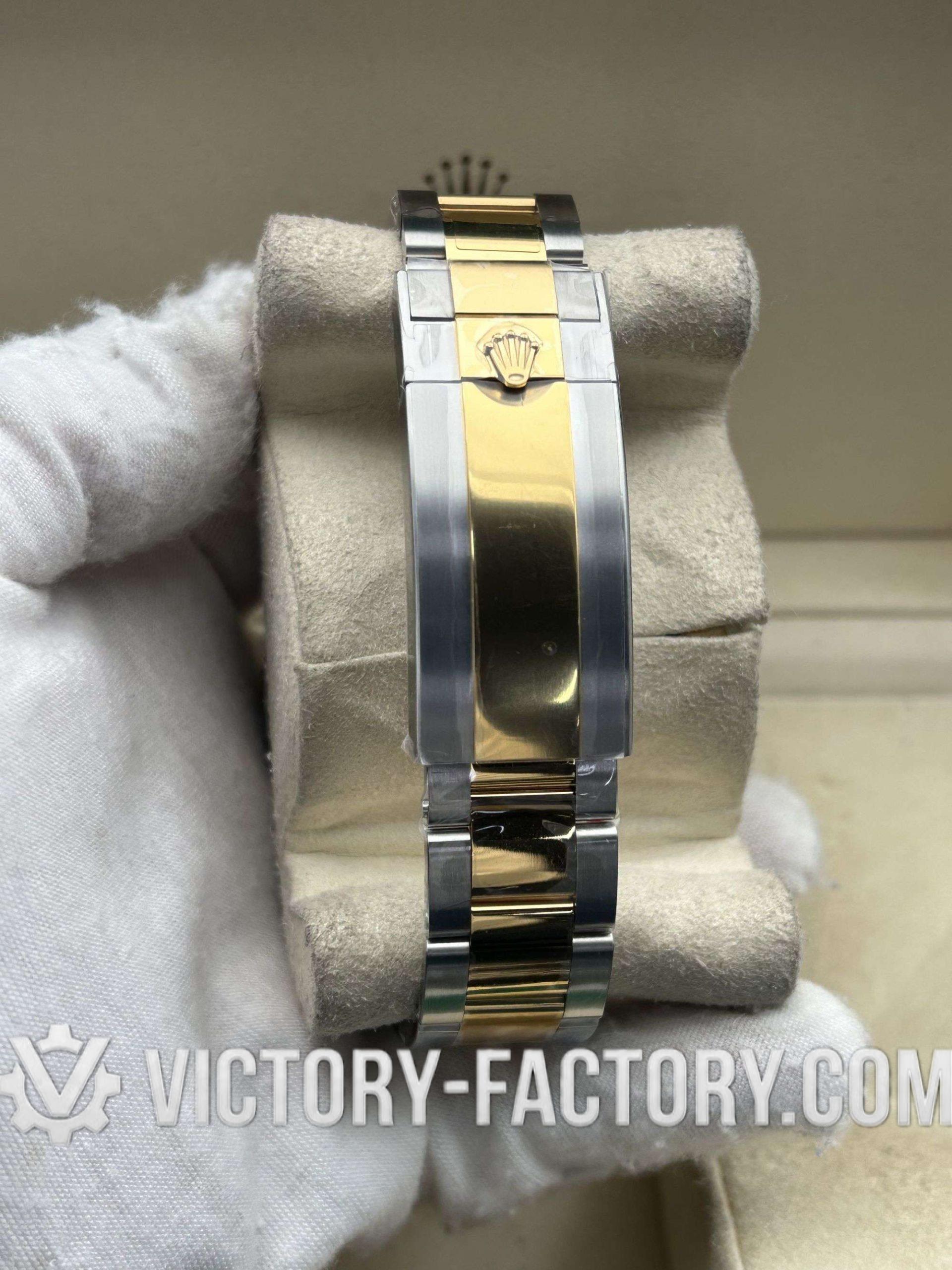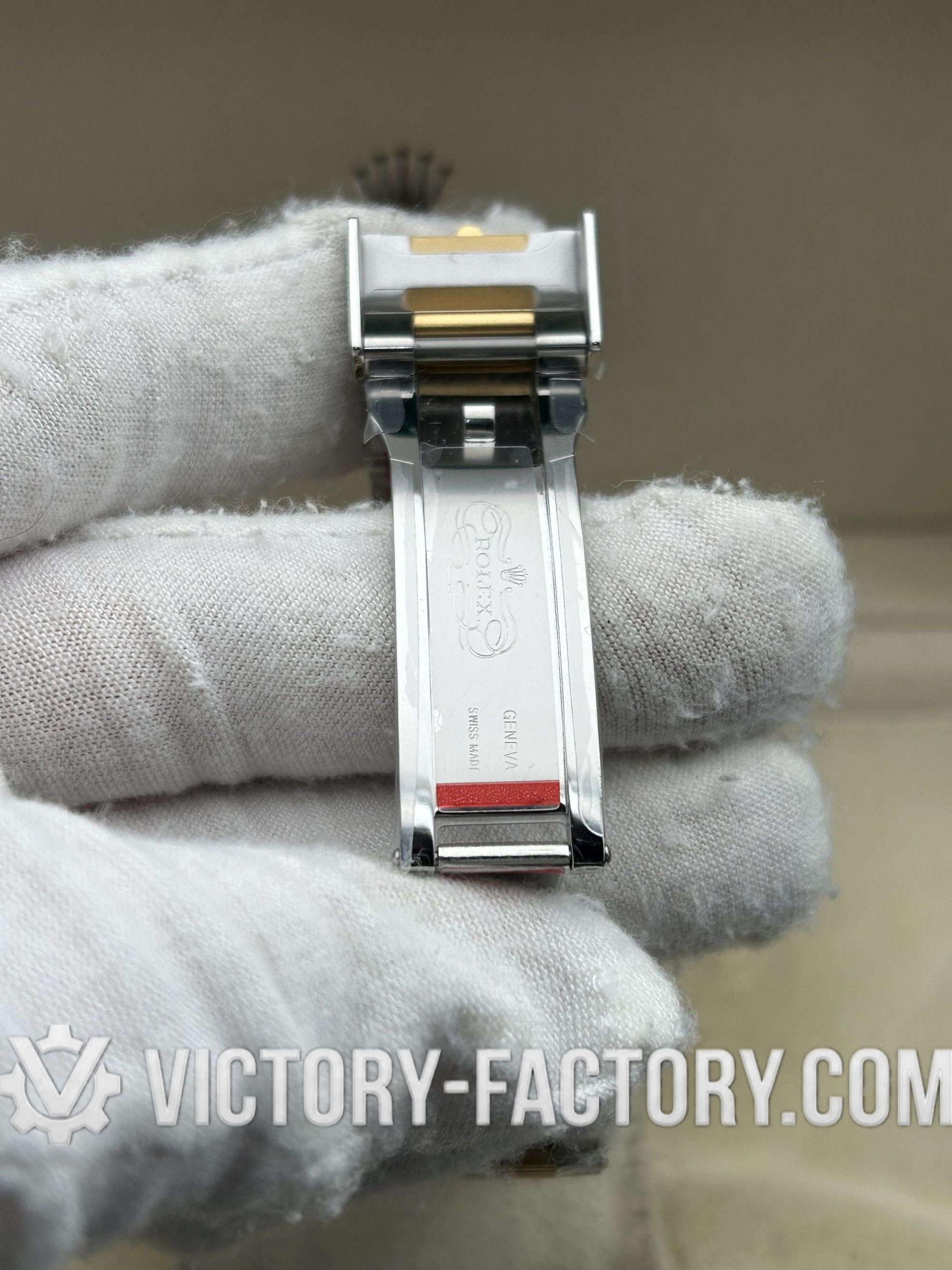 • CASE: Crafted in the finest tradition, the 43mm case is made from solid 904L stainless steel wrapped in 18k yellow gold. It features a monobloc construction identical to the genuine Rolex, complete with a screw-down case-back and a Triplock triple waterproofness system. The rehaut ring is laser-engraved with “ROLEXROLEX” and protected by a DLC scratch-protection coating to ensure lasting beauty.