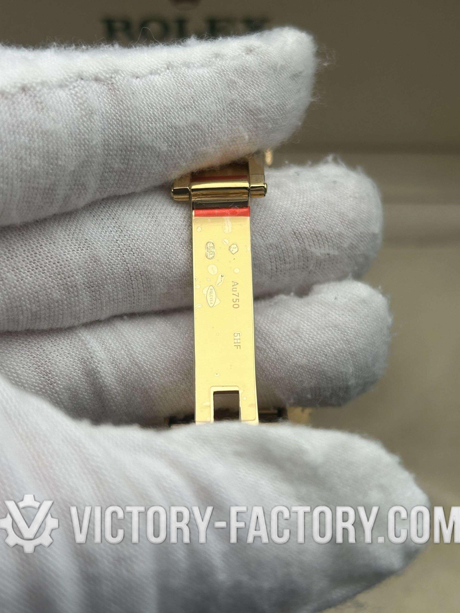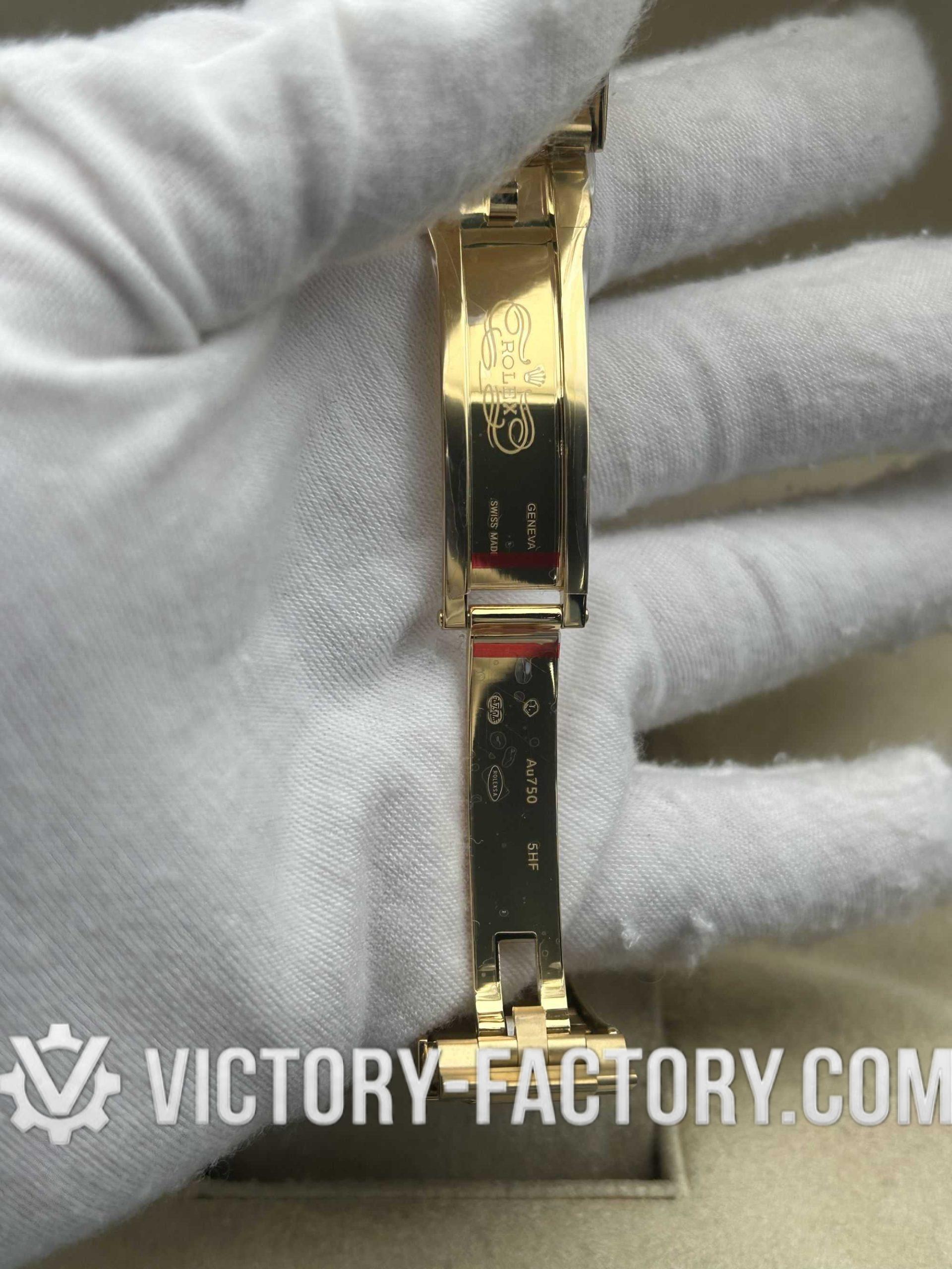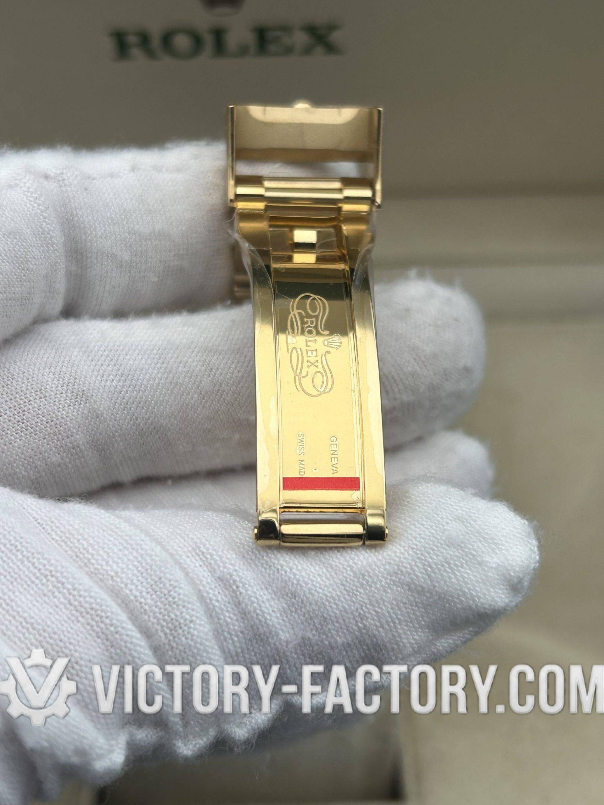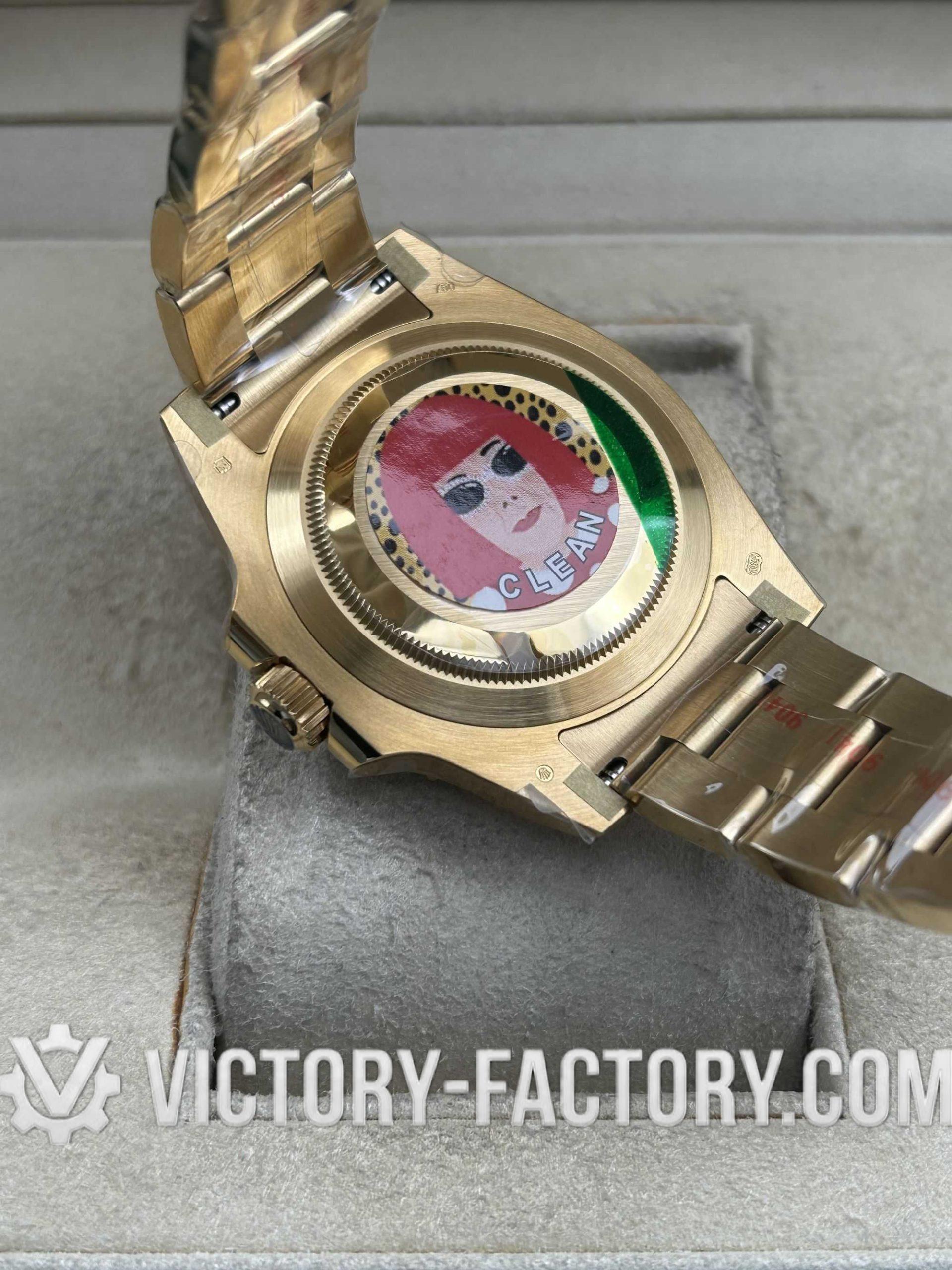 Embodying Victory Factory’s dedication to excellence, the 40mm case is wrapped in 18k yellow gold over solid 904L stainless steel, mirroring the authentic Rolex design.