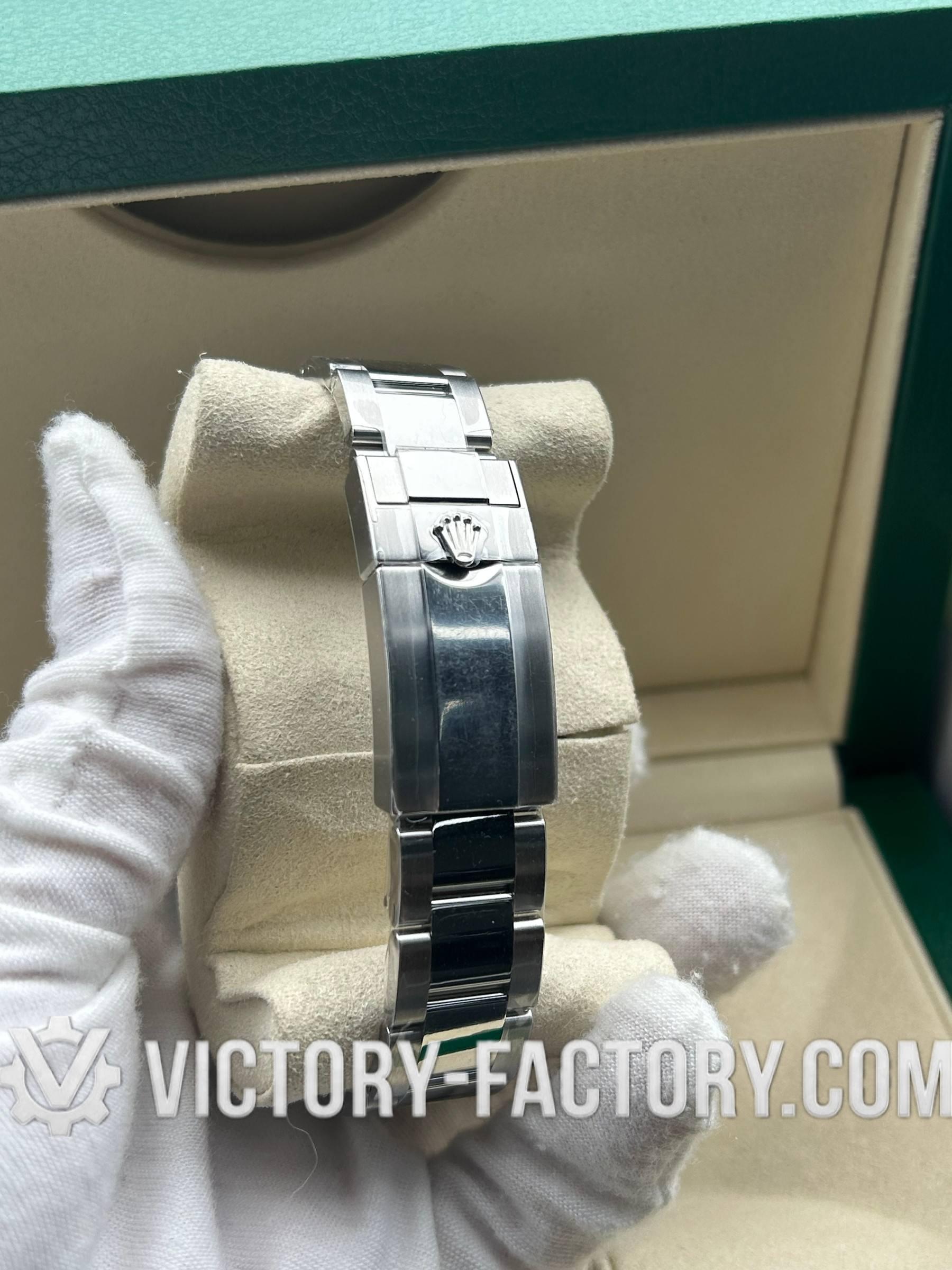 The 40mm Oyster case is expertly crafted from solid 904L Stainless Steel, matching Rolex’s Oystersteel for unmatched durability and a monobloc construction.