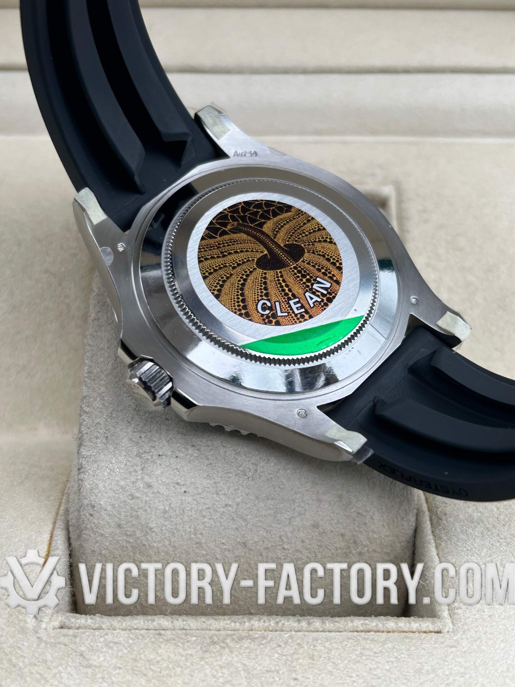 It precisely matches the genuine Rolex 904L steel and includes a screw-down case-back and winding crown for ultimate durability.