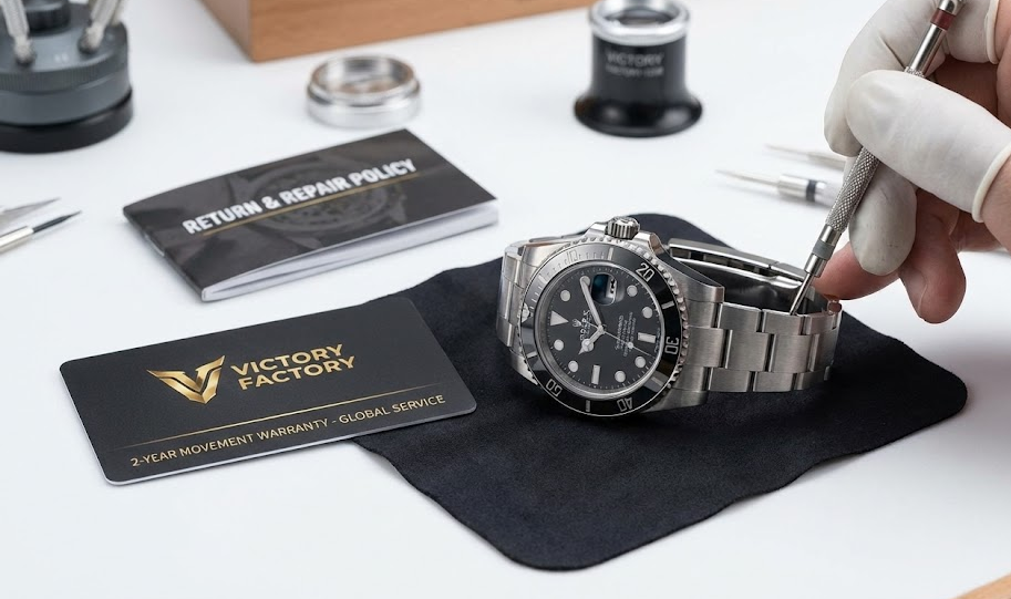 A luxury watch is a machine, and machines require support. Victory Factory offers the industry’s most comprehensive after-sales protection.